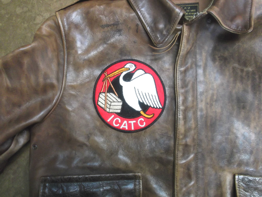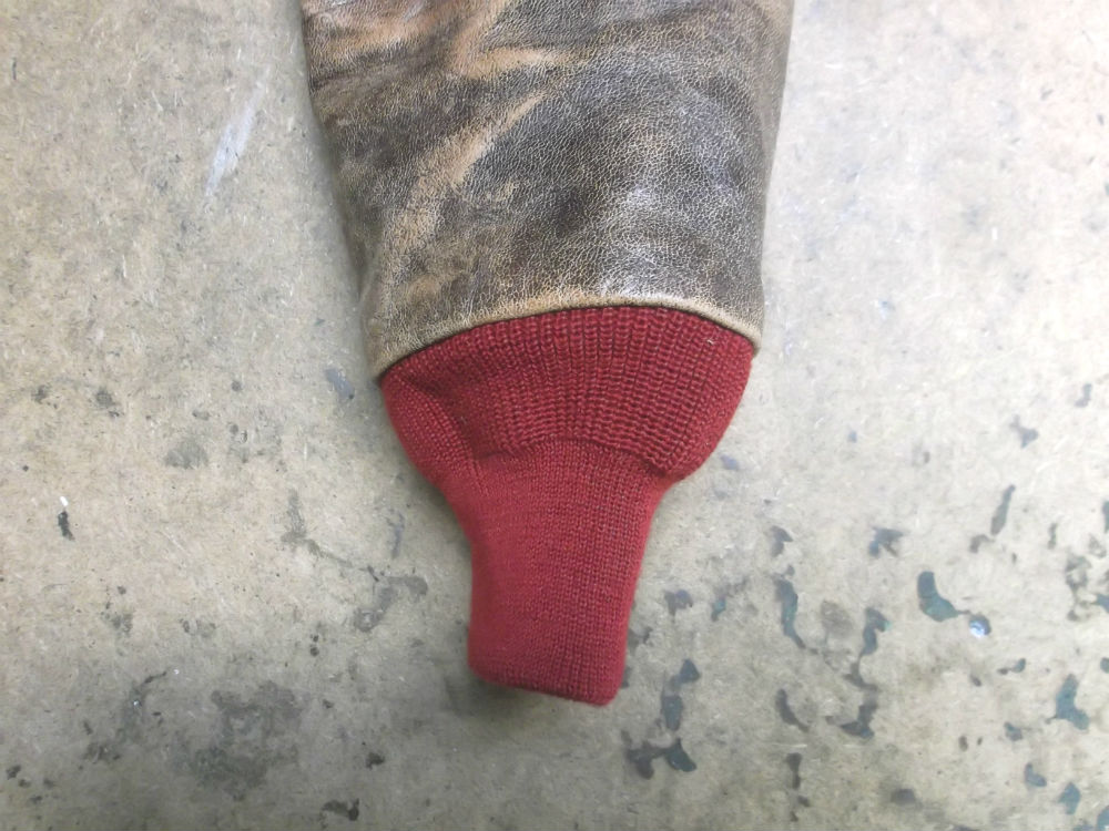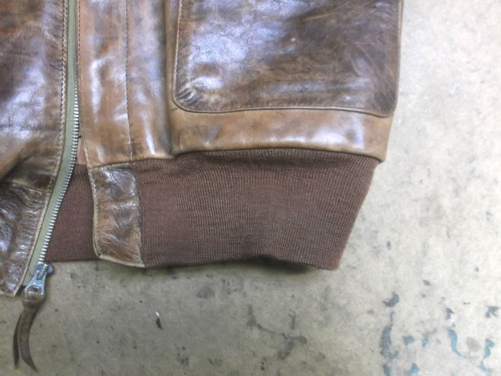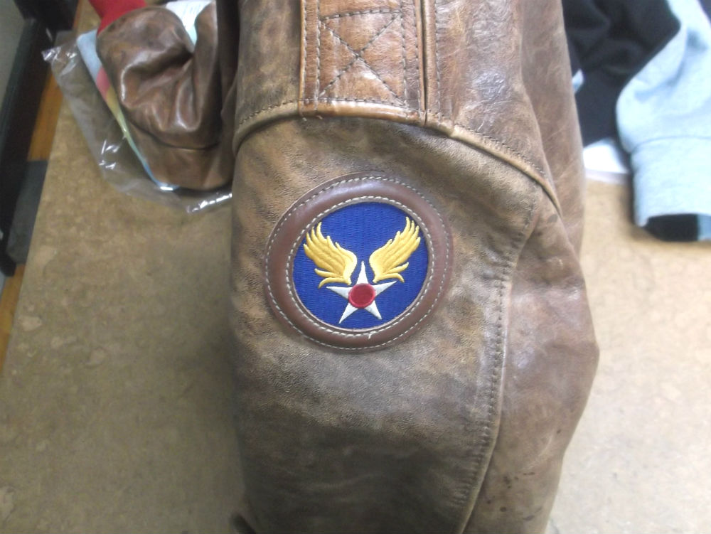 所々破れだしたA-2フライトジャケットのリブニットを新しいものに交換とお客さんの好みの位置にワッペンを取り付けていきます。