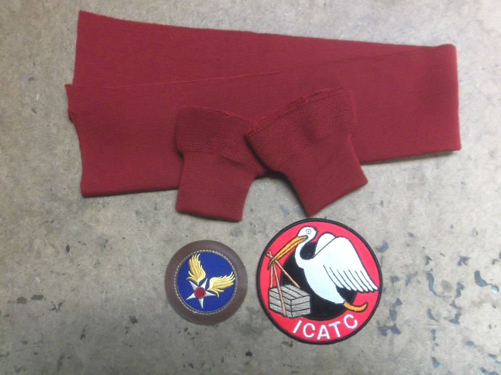2枚目は新しい交換用の両袖と腰回りの赤リブと肩と胸に取り付けていくワッペンです。