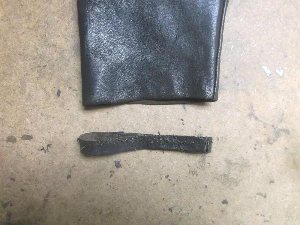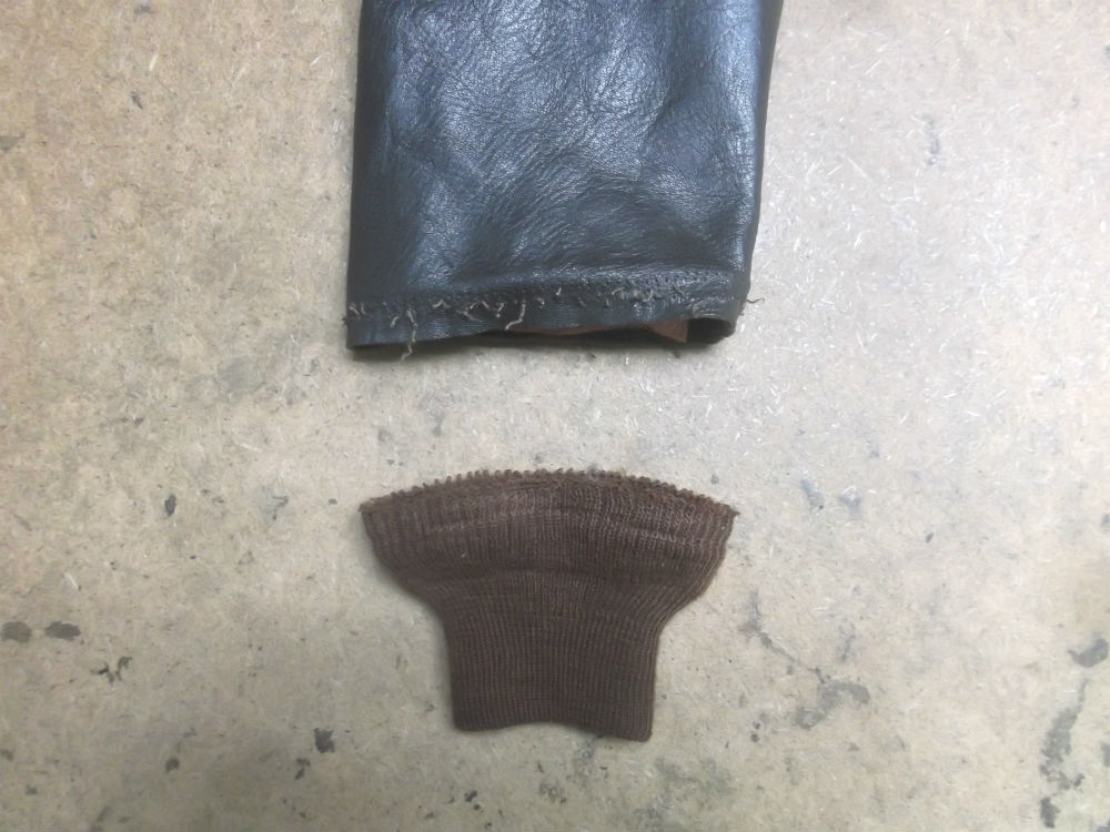 3枚目は表のレザー部分の袖先をカットした後の写真です。