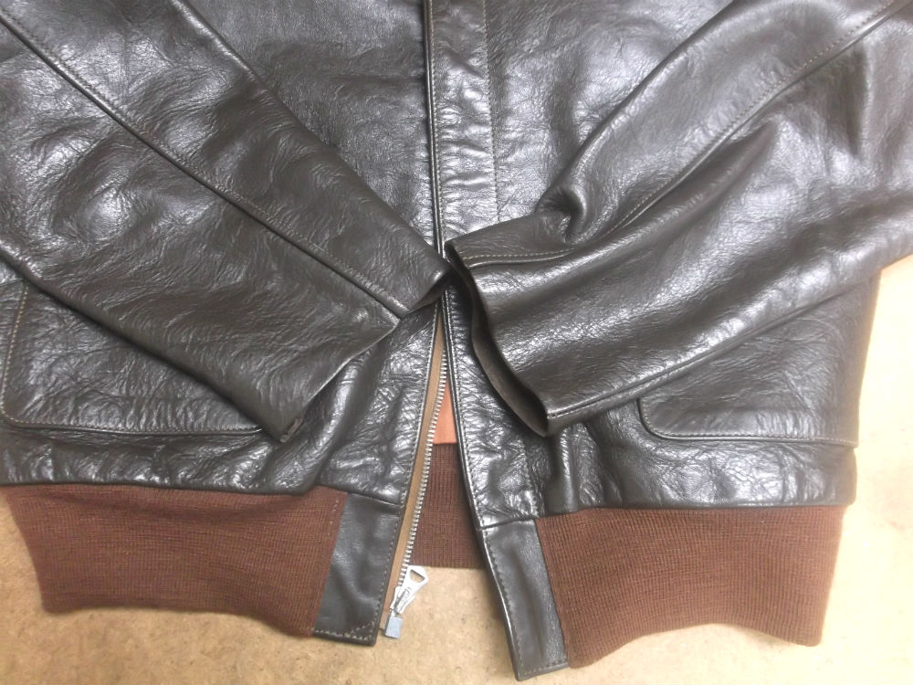 8枚目は9枚目との比較で袖丈を短くしていく前のA-2フライトジャケットです。