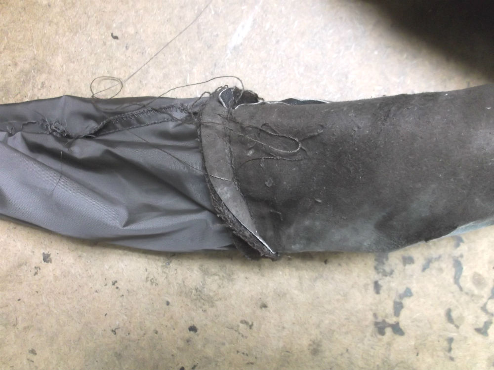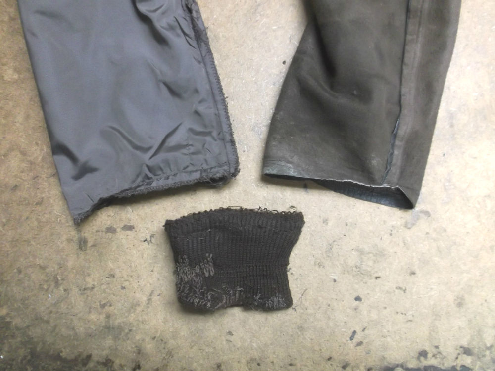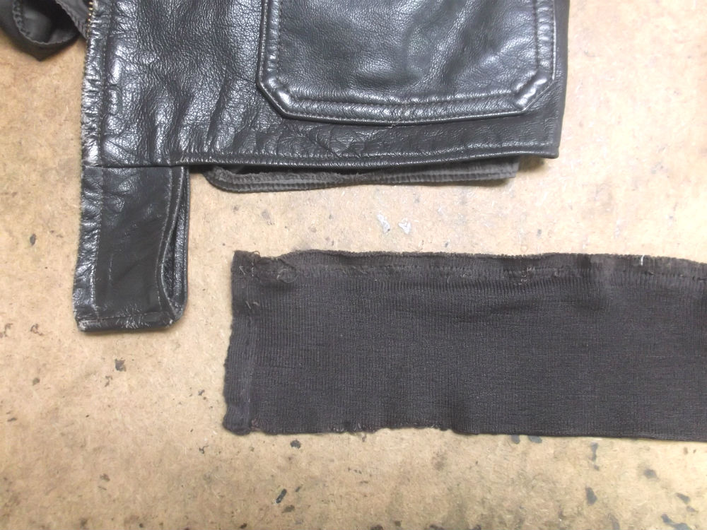 使い込んで破れだしたG-1フライトジャケットのリブニットを新しいものに交換していきます。