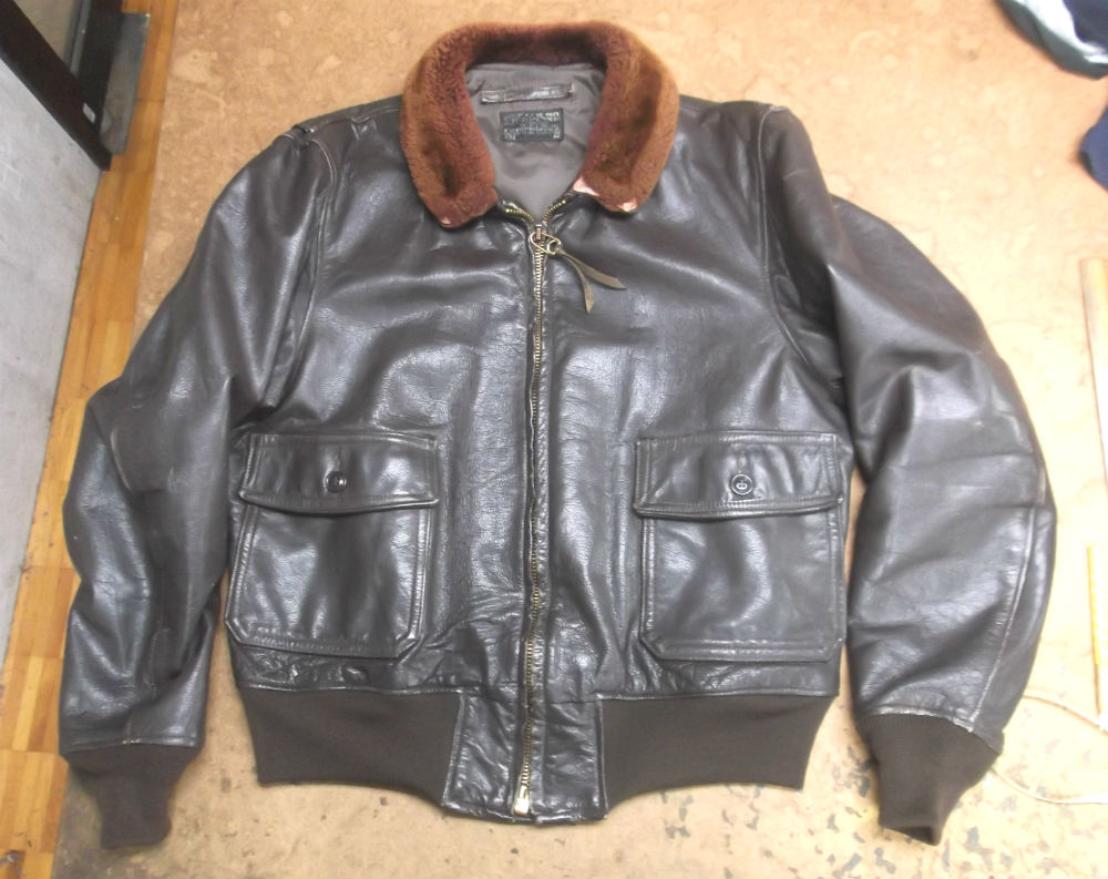 1枚目は静岡県からの郵送のお客さんの袖と腰回りを交換していく前のG-1フライトジャケットです。