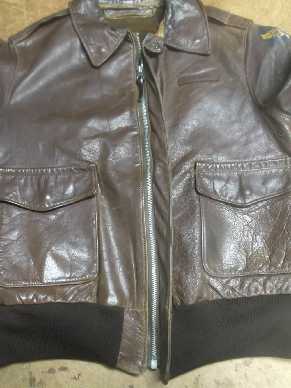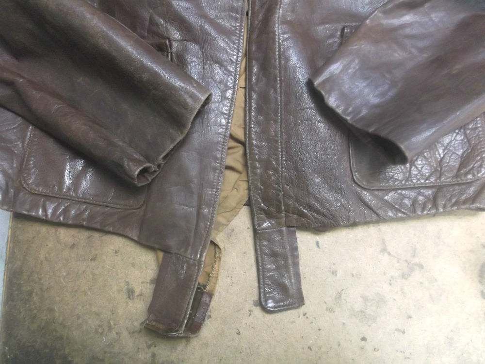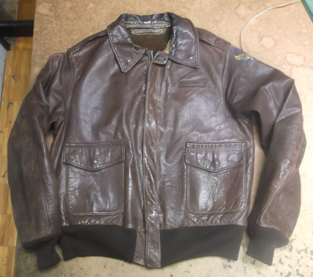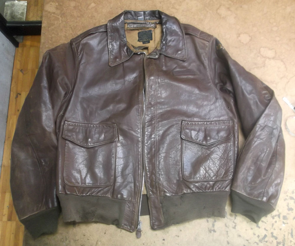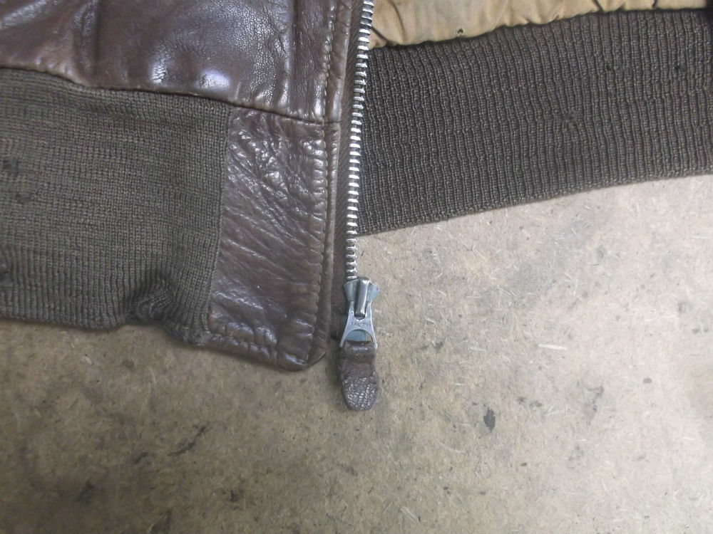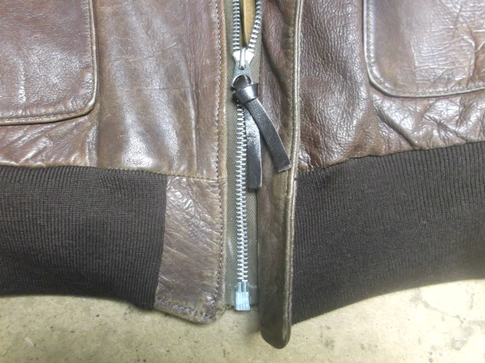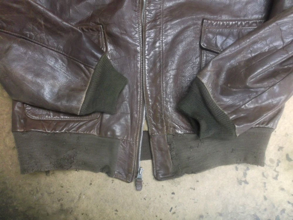 1枚目は神奈川県からの郵送のお客さんのジッパーとリブニットを交換していく前のA-2フライトジャケットです。