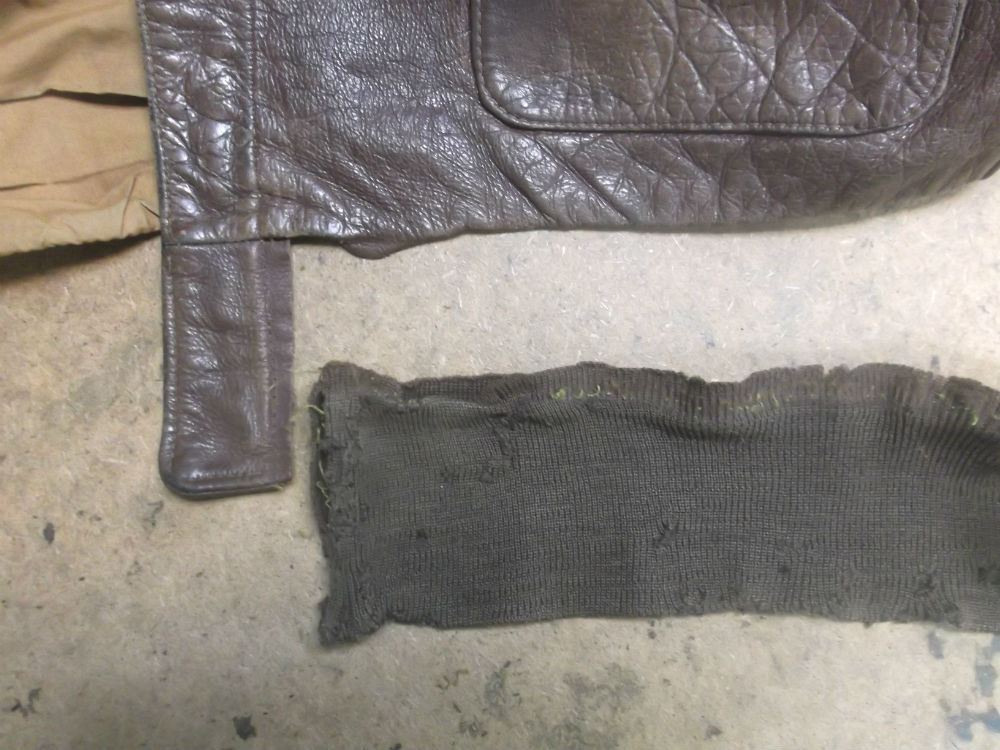 古くなって所々破れだしたA-2フライトジャケットのリブニットを交換 A-2リブ直し
