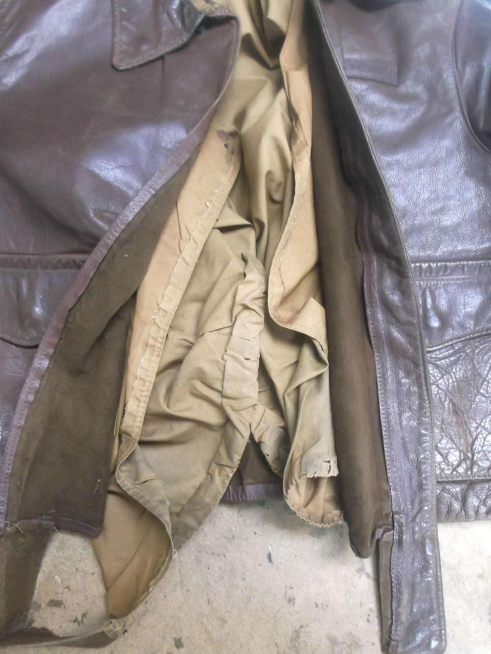 11枚目は袖と腰回りのリブニットを取り外したA-2フライトジャケットの写真です。