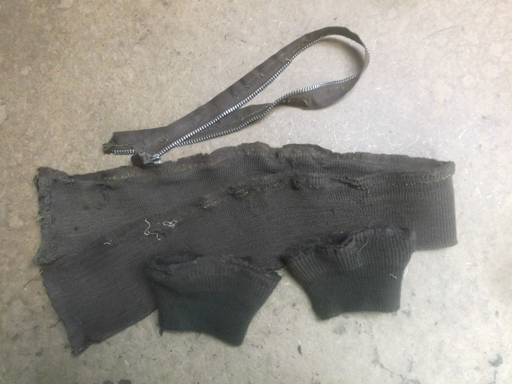 12枚目は取り外したファスナーと袖と腰回りのリブニットの写真です。