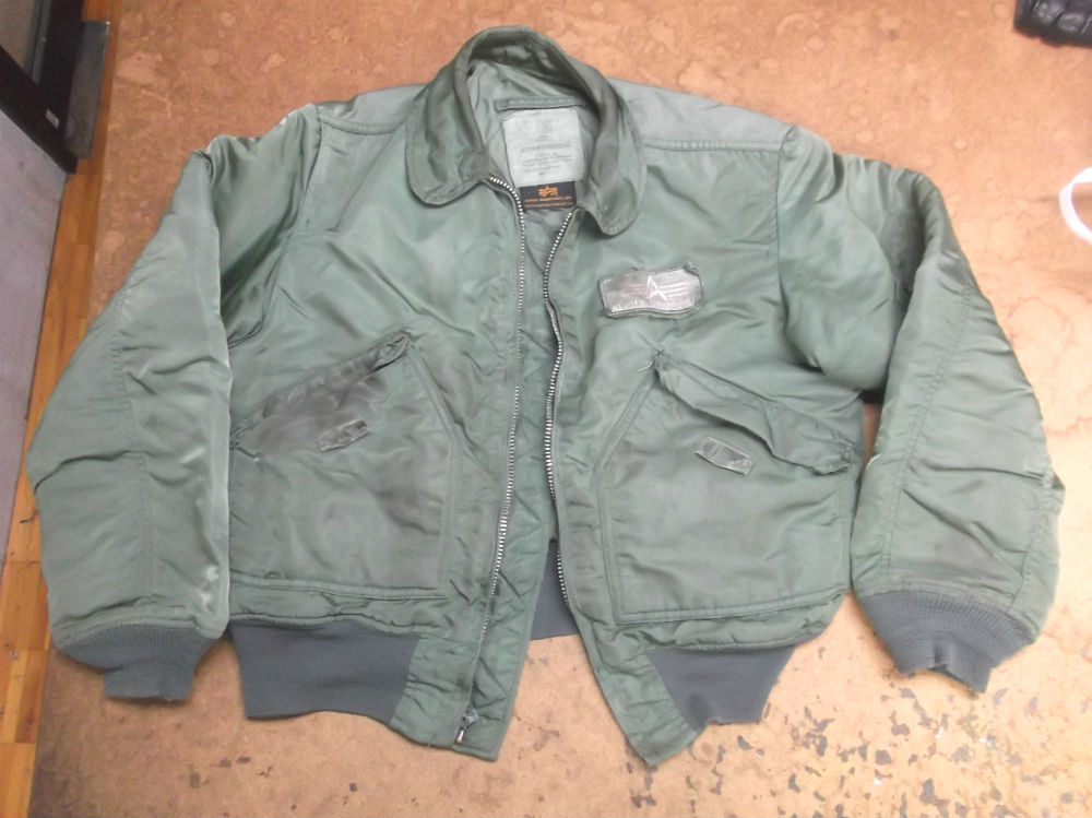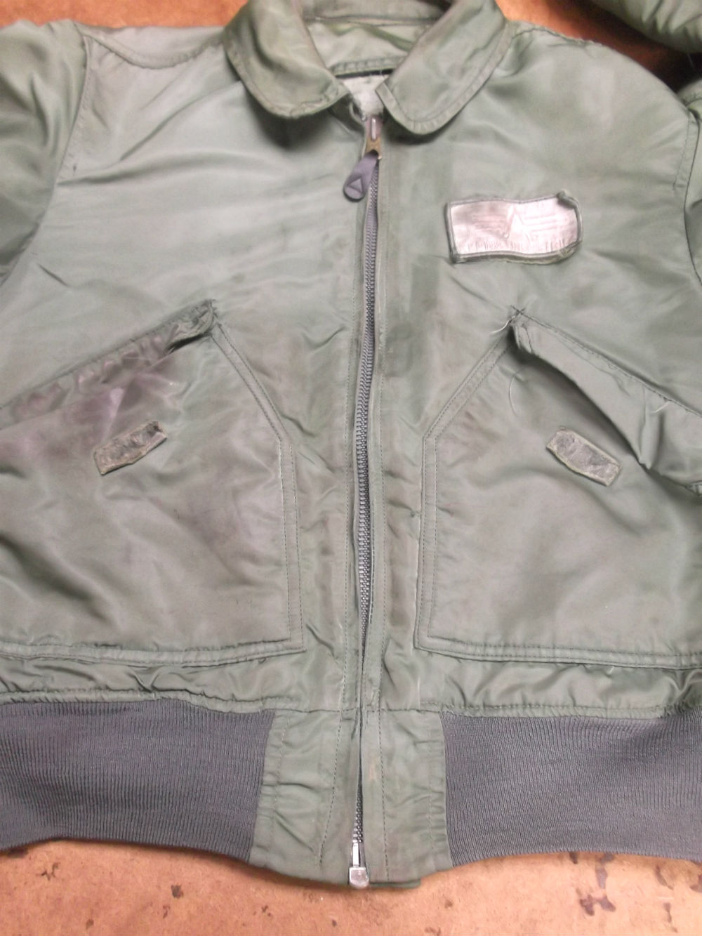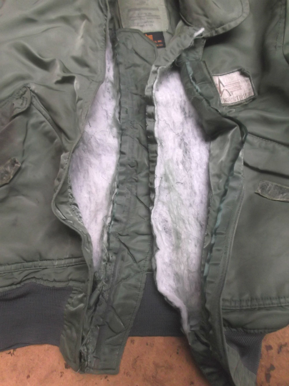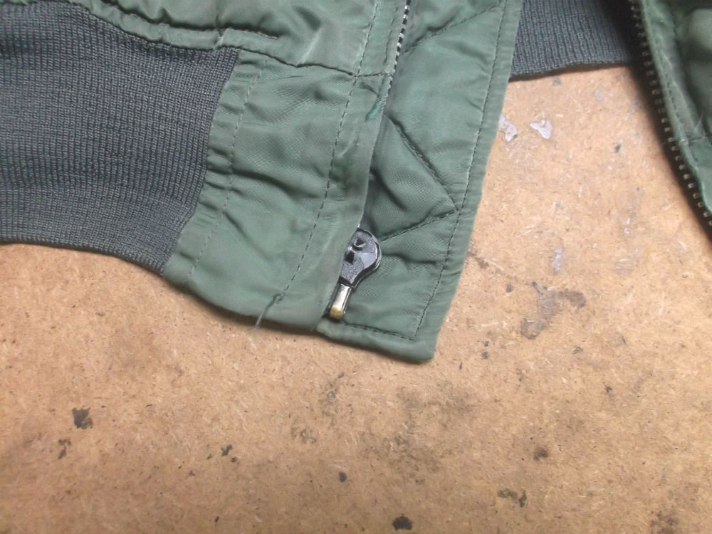 4枚目はCWU-45Pフライトジャケットから壊れたフロントジッパーを外した後の写真です。