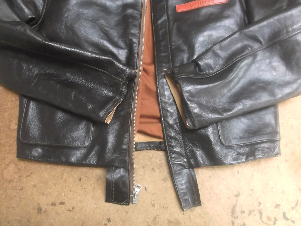 1枚目は来店されたお客さんの両袖と腰回りを交換していくA-2フライトジャケットです。