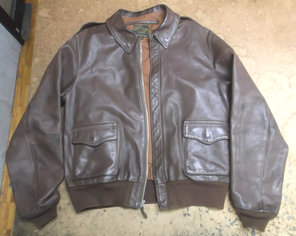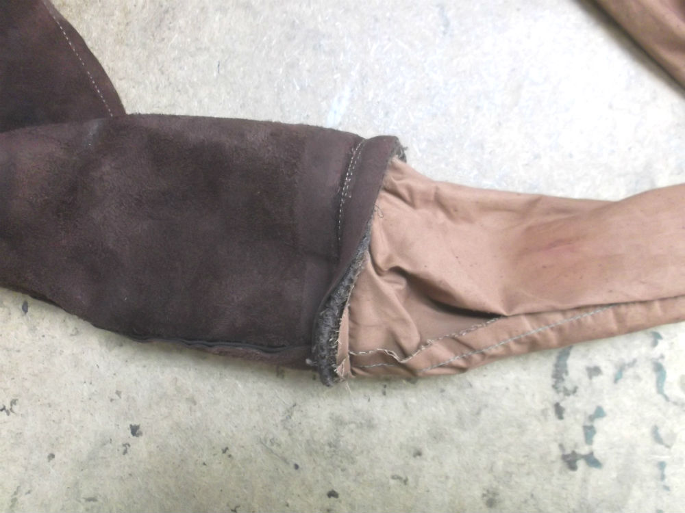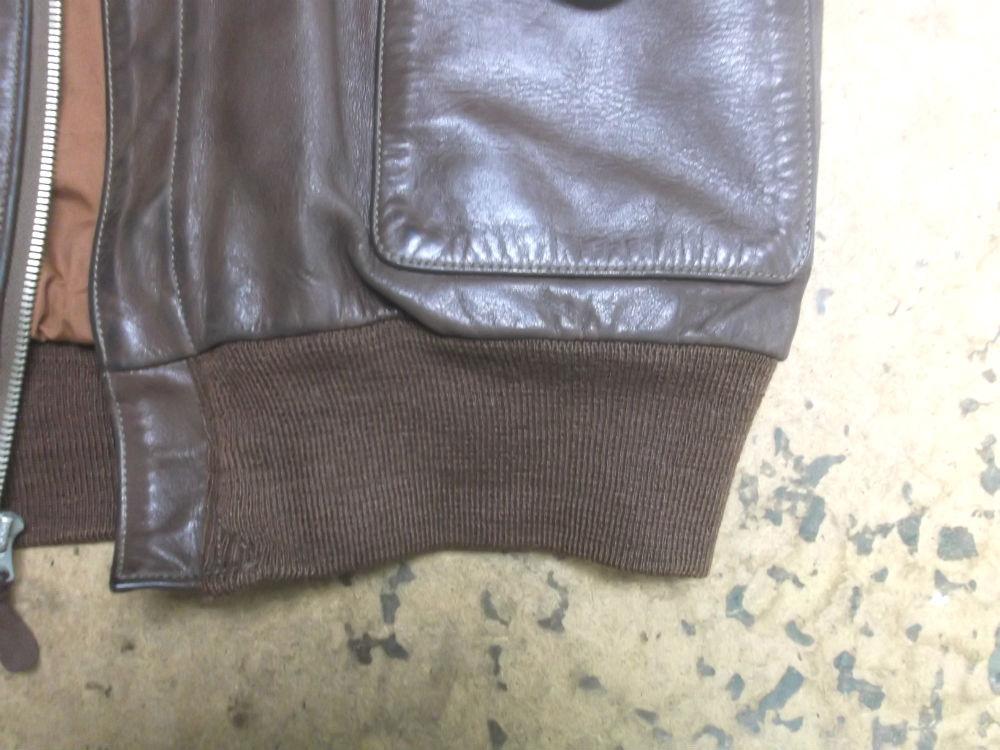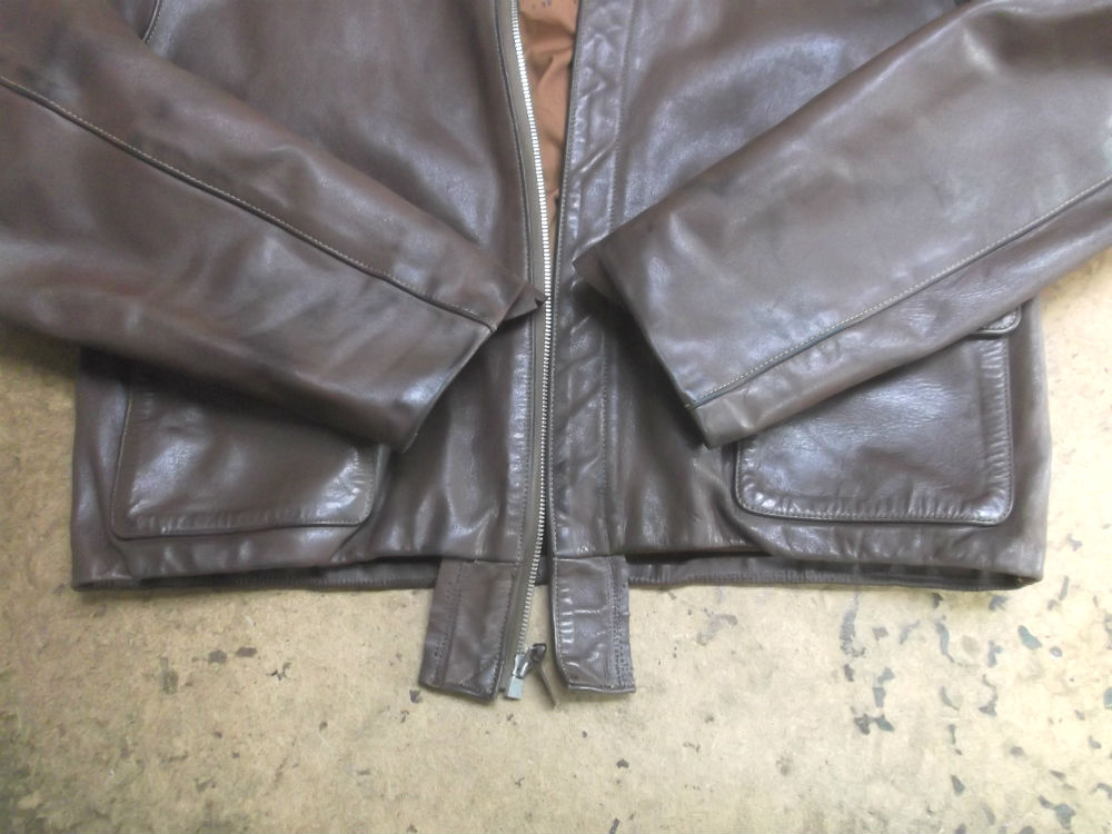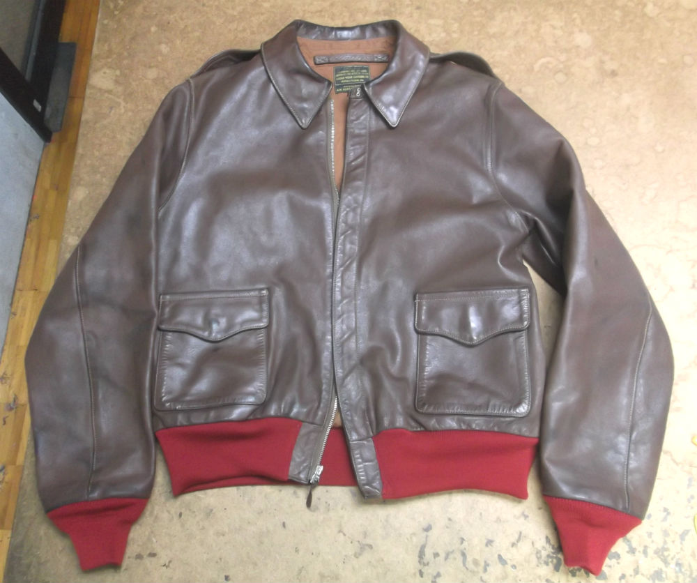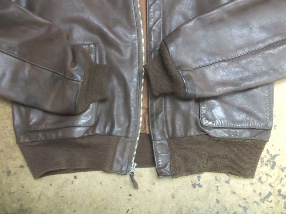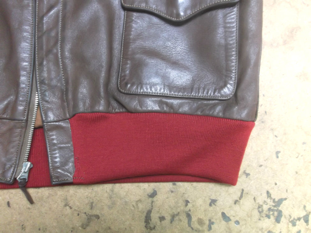 1枚目は岩手県からの郵送のお客さんの茶色のリブニットを赤リブに交換していく前のA-2フライトジャケットです。
