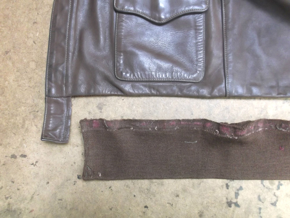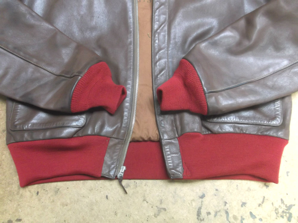A-2フライトジャケットの茶色のリブニットを赤リブに交換 a-2ニットパーツ取り換え
