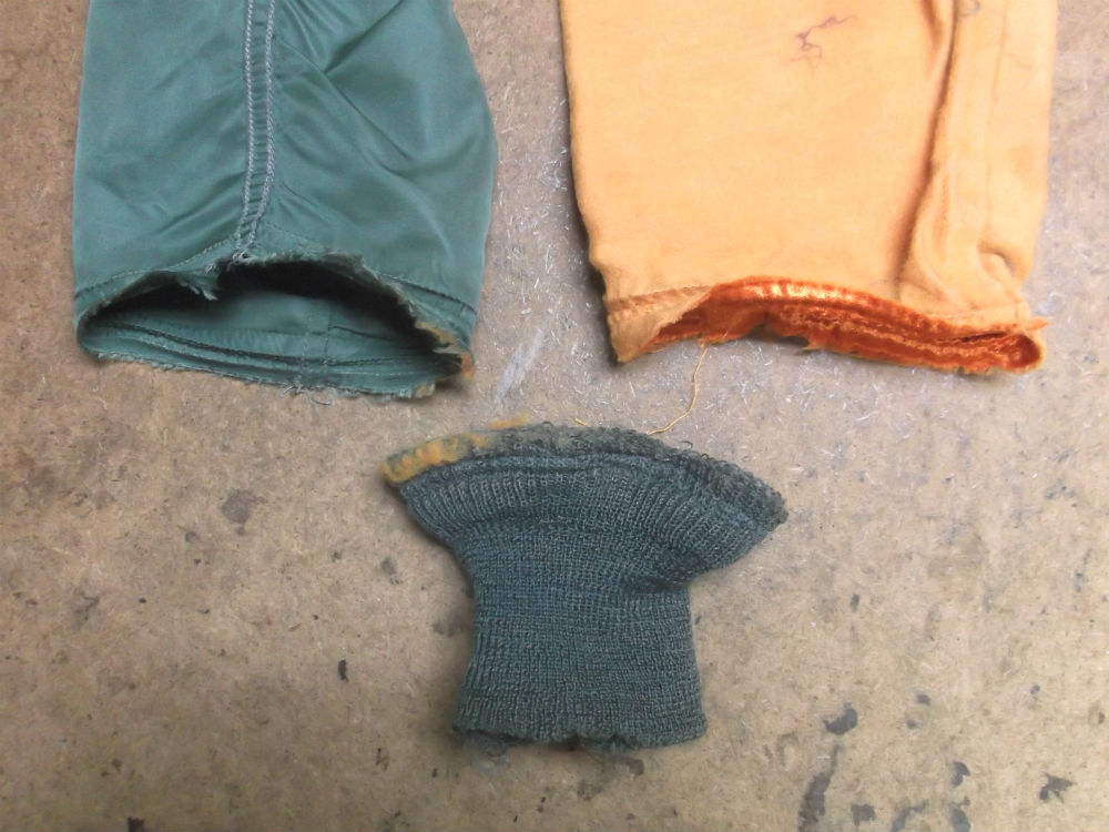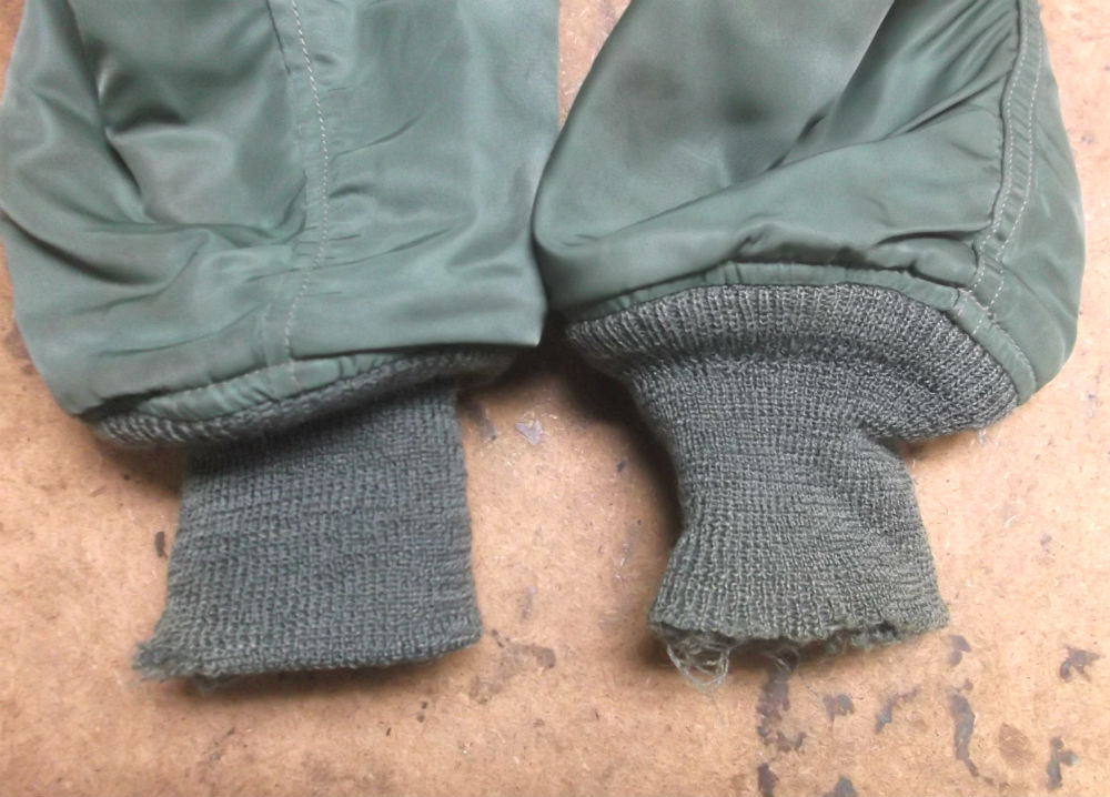 両袖の所々破れだしたL-2Bのリブニットを新しいものに交換していきます。