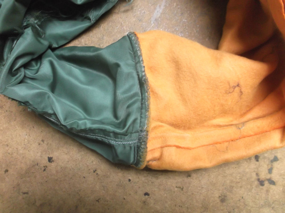 1枚目は長崎県からの郵送のお客さんの両袖のみ交換していく前のL-2Bフライトジャケットです。