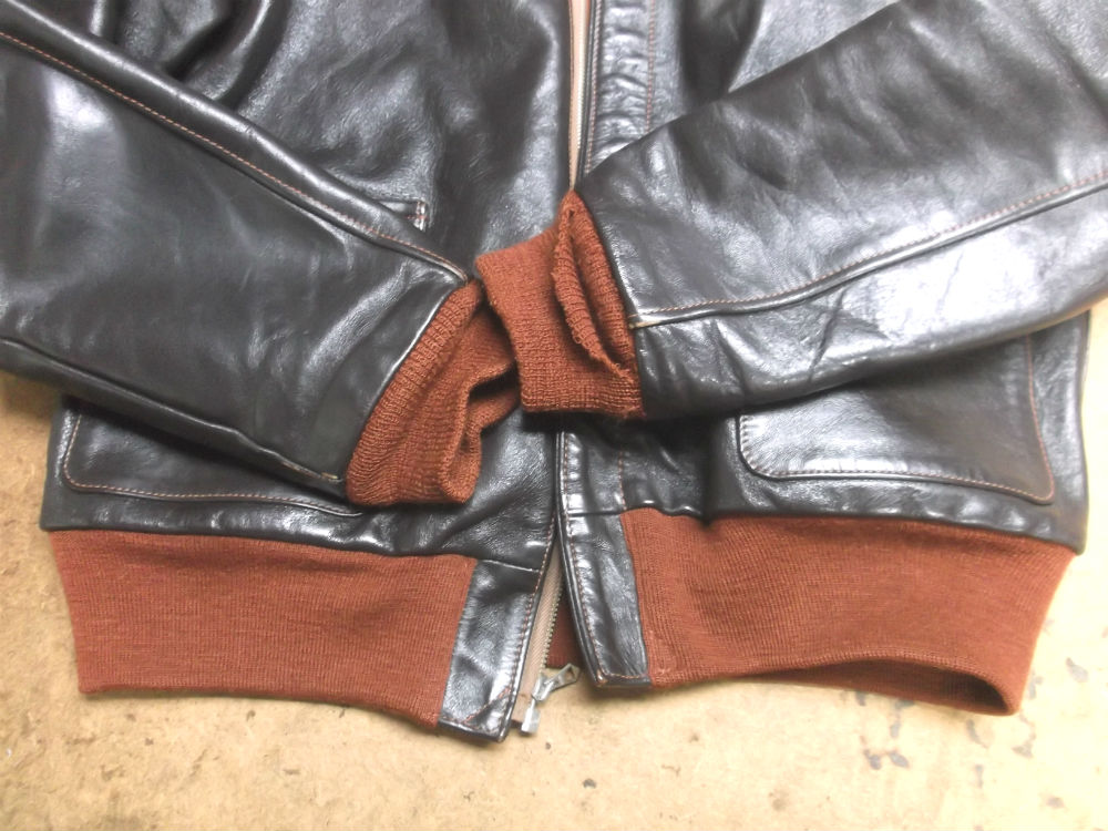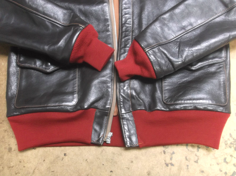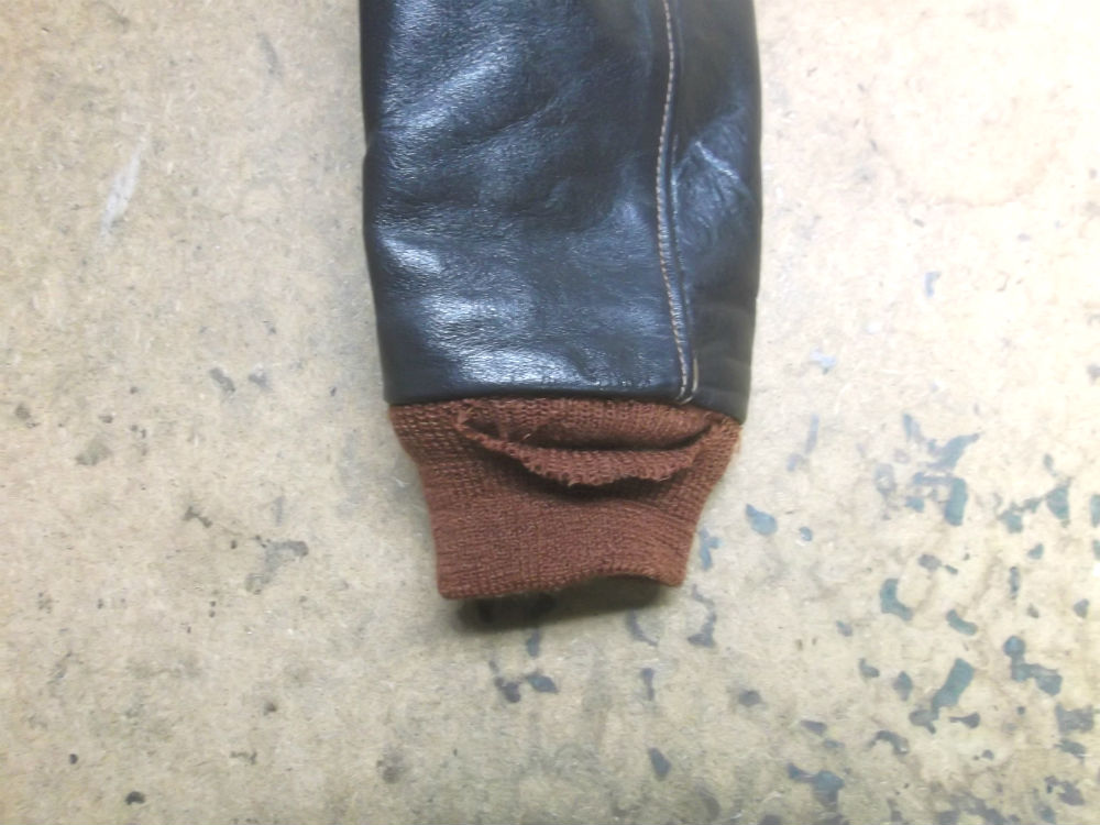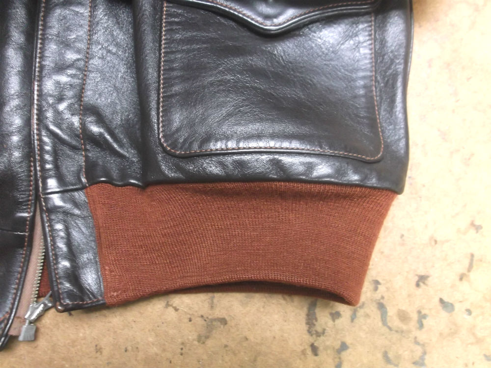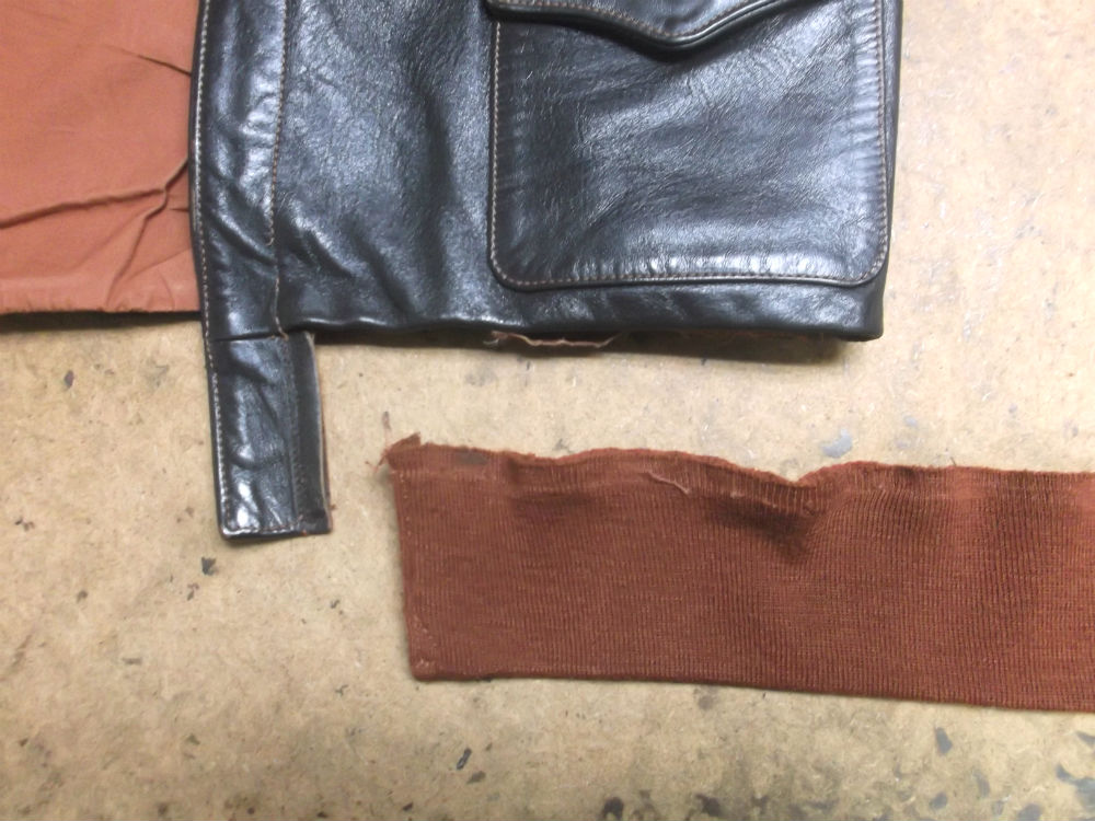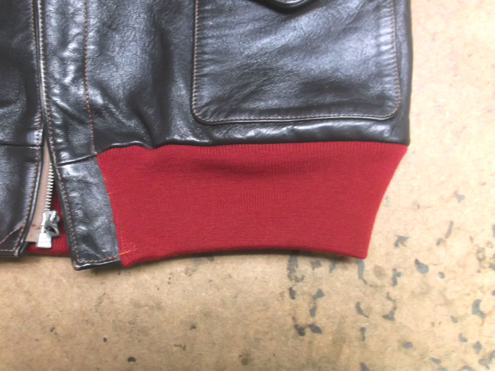 破れだしたA-2フライトジャケットのリブニットを赤リブに交換 a-2ニットパーツ取り換え