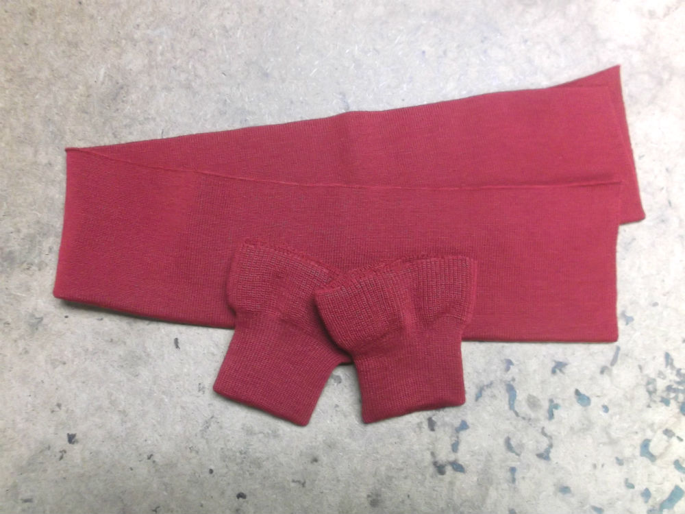 3枚目は取り外していく前の両袖と腰回りのリブニットの写真です。