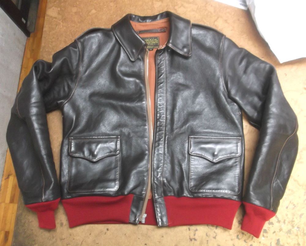 1枚目は福井県からの郵送のお客さんの赤リブに交換していく前のA-2フライトジャケットです。
