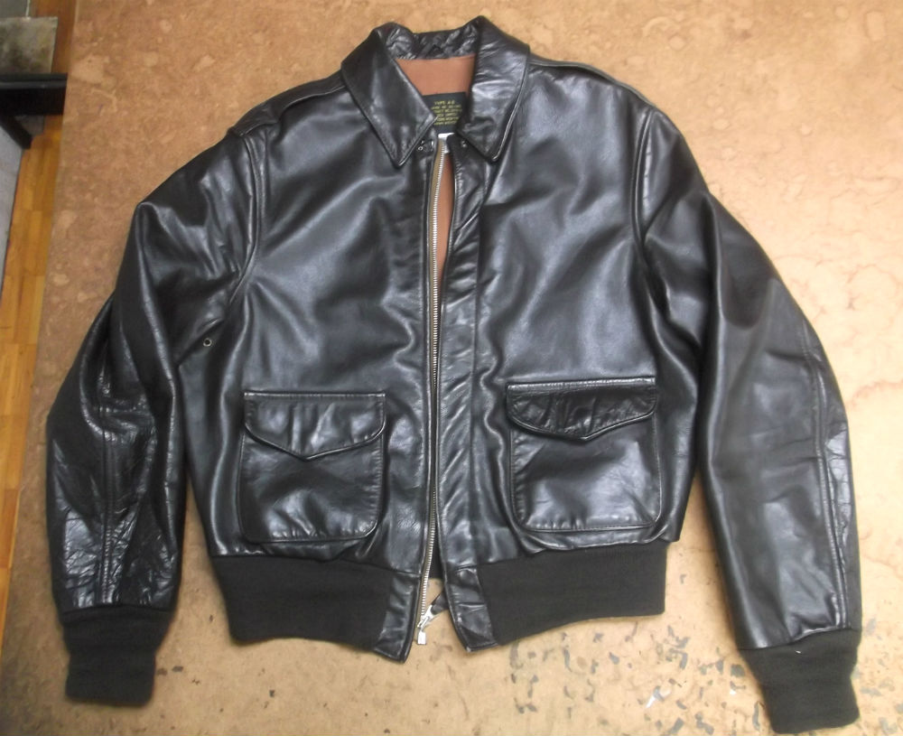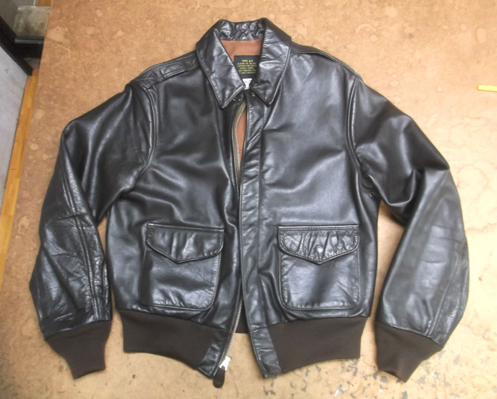 A-2フライトジャケットの両袖と腰回りのリブニットを新しいものに交換し…