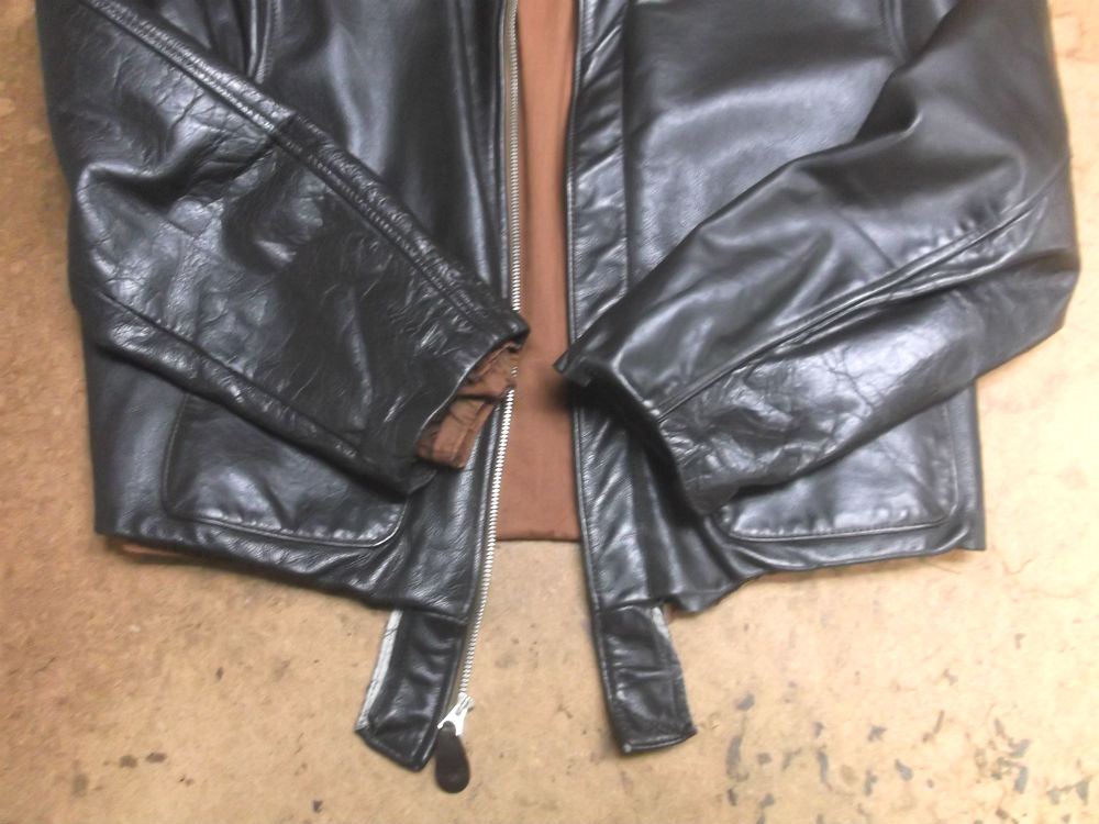 長い袖丈のレザージャケットをお客さんの好みの長さに短くリサイズ 革ジャン袖丈詰め直し