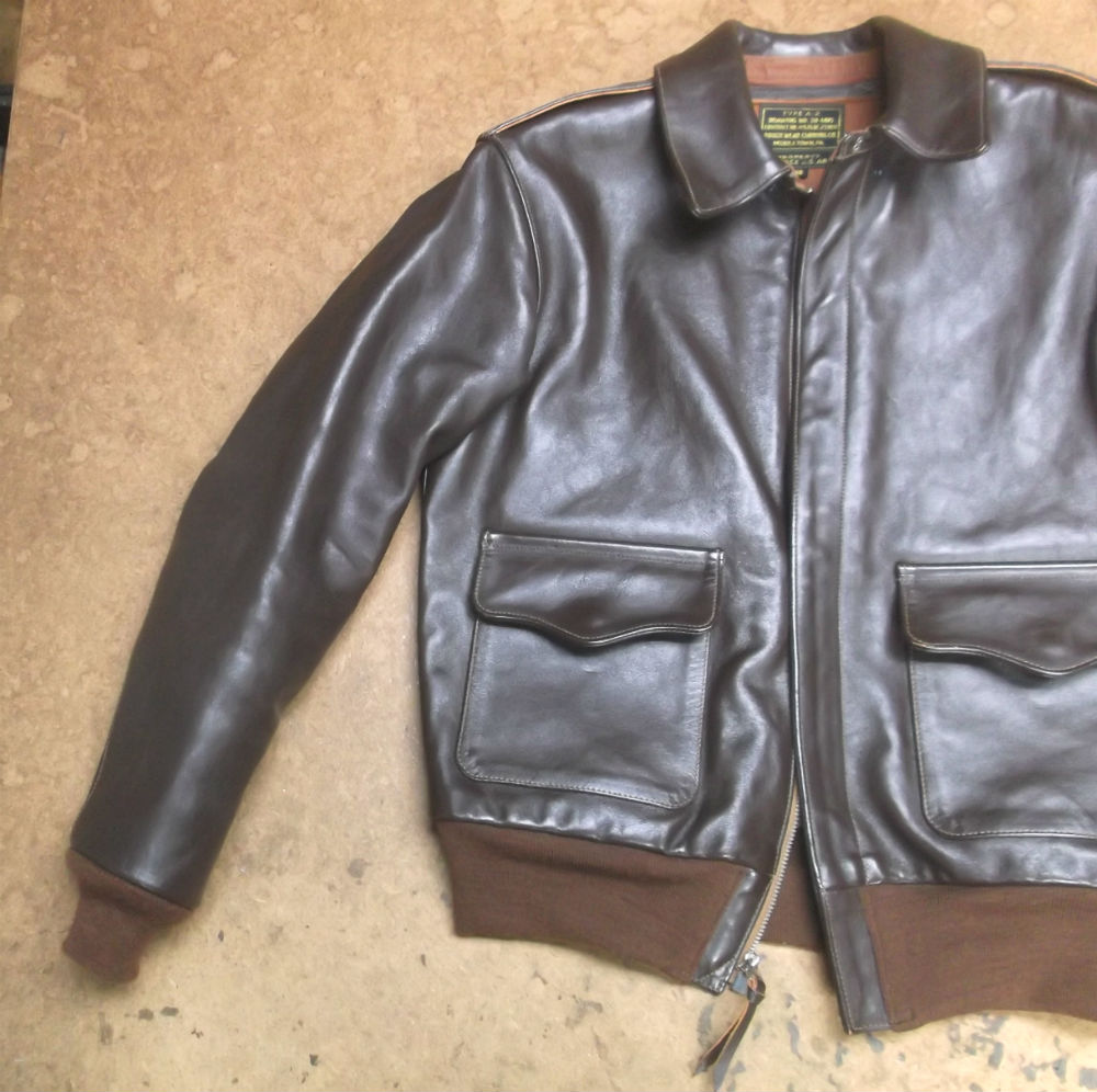 10枚目は11枚目との比較で袖丈を短くしていく前のA-2フライトジャケットの写真です。