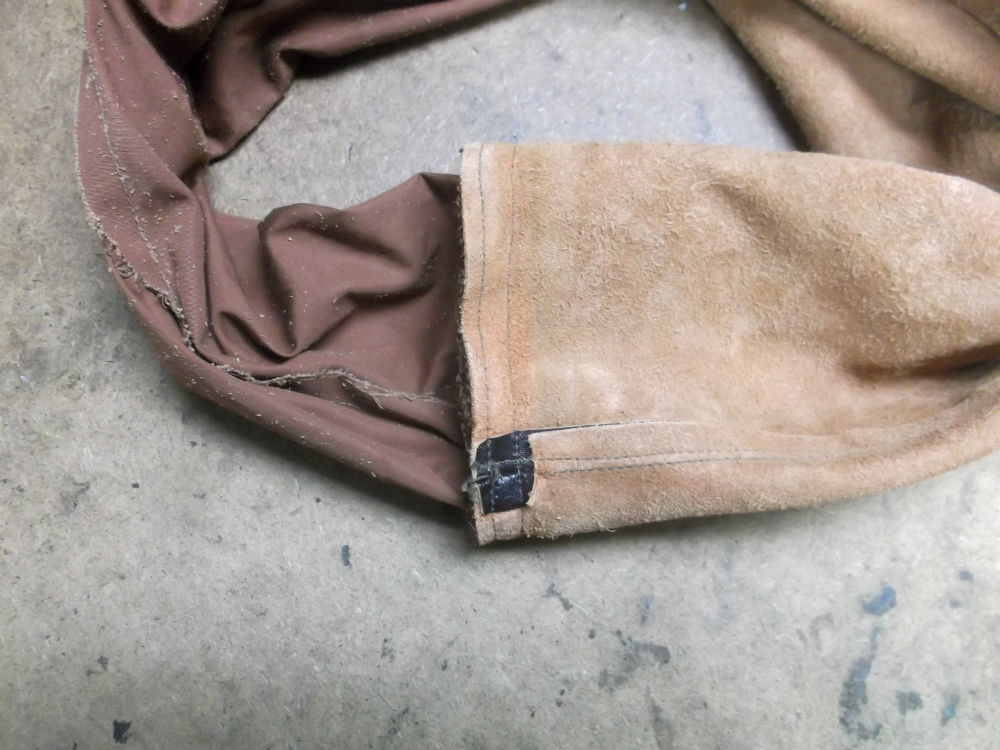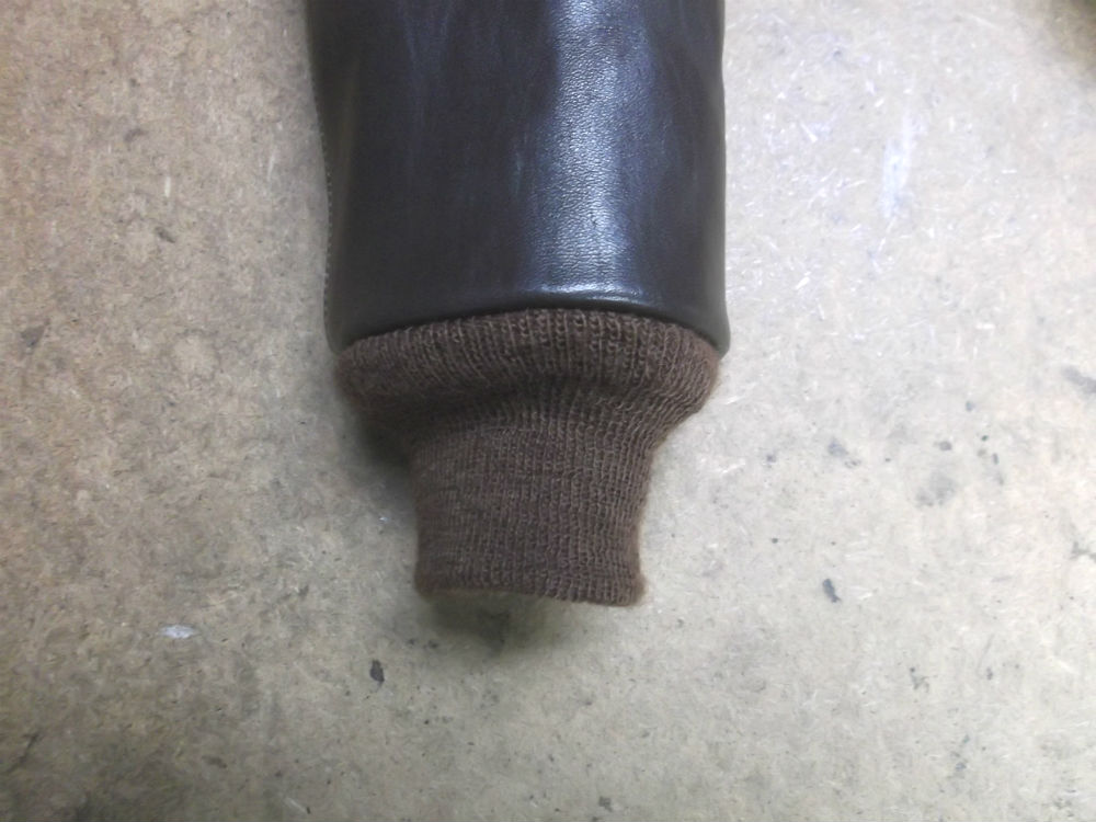 9枚目は袖先のレザーと裏地の生地をカットして袖のリブニットを組み直した後の写真です。