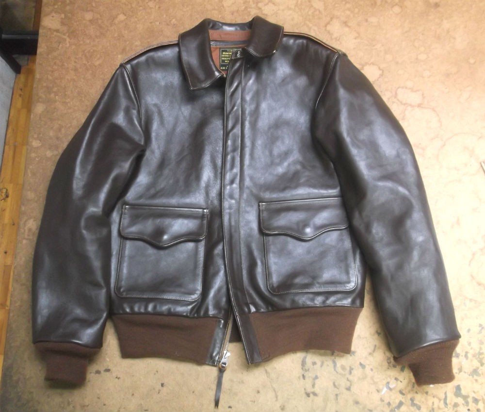 1枚目は来店されたお客さんの袖丈を短くしていく前のA-2フライトジャケットです。