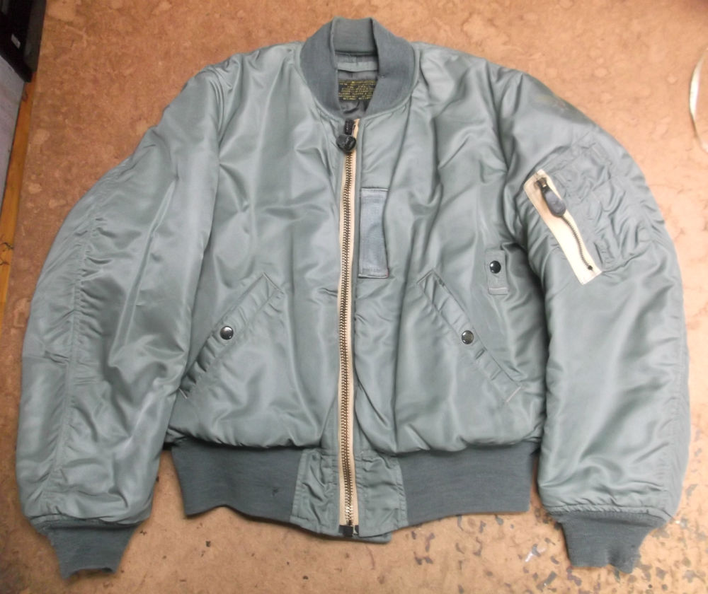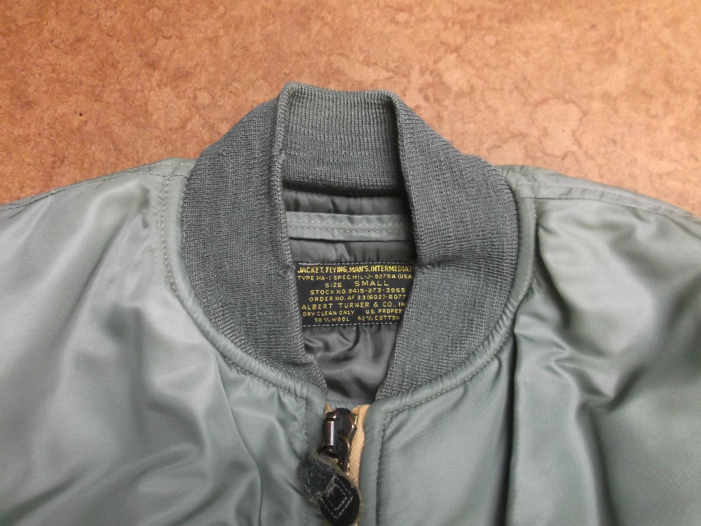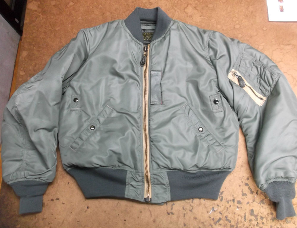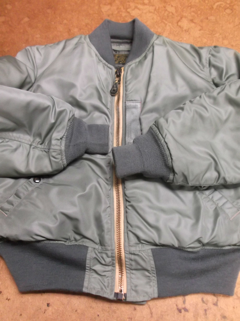 1枚目は神奈川県からの郵送のお客さんの襟、袖、腰回りのリブニットを交換していく前のMA-1フライトジャケットです。