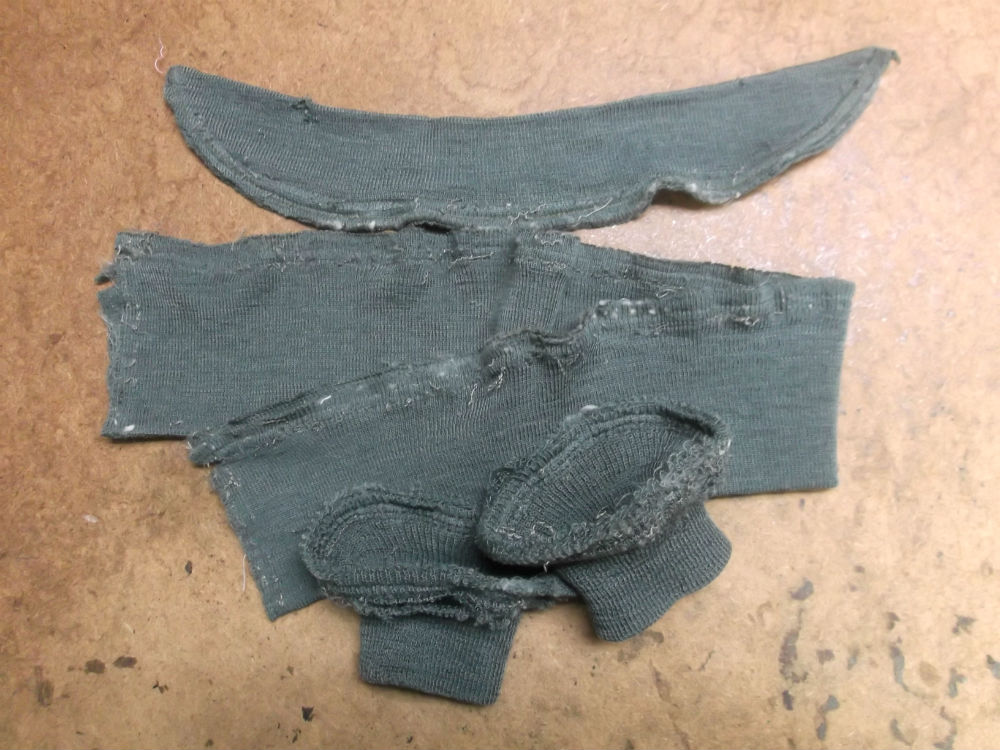 2枚目はお客さんが用意してくださった新しい襟、袖、腰回りのリブニットの写真です。
