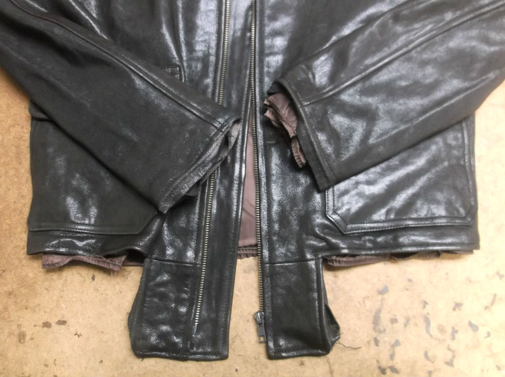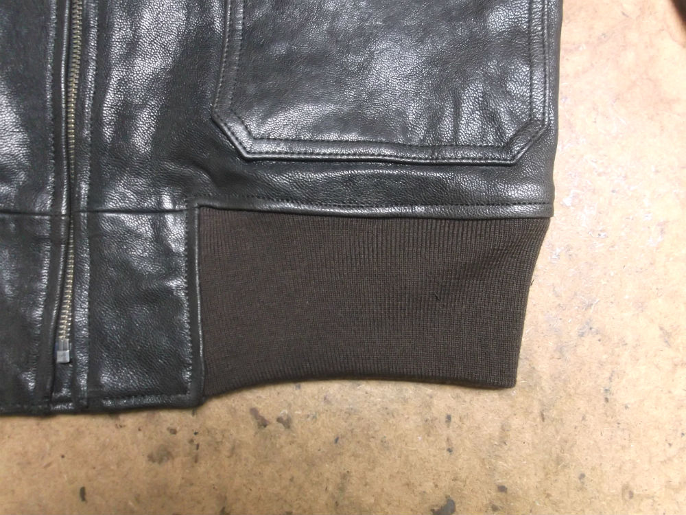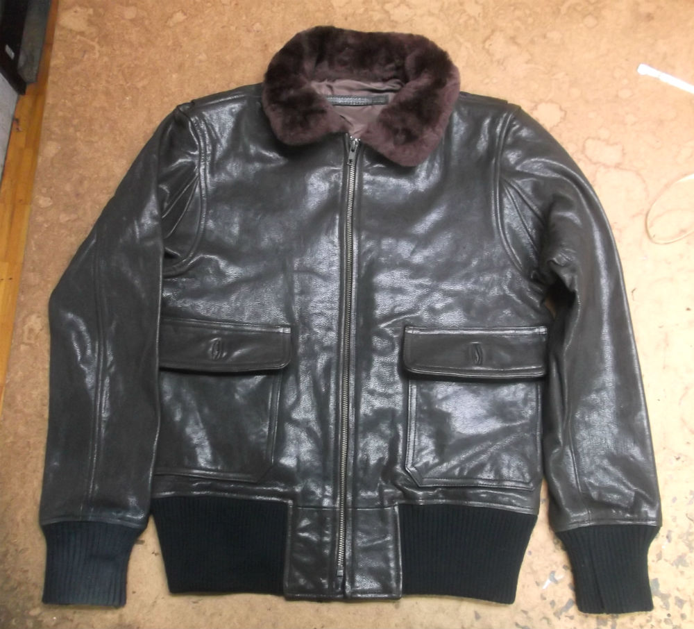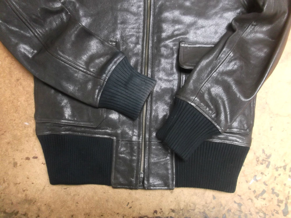 1枚目は来店されたお客さんの両袖と腰回りのリブニットを交換していく前のG-1フライトジャケットです。