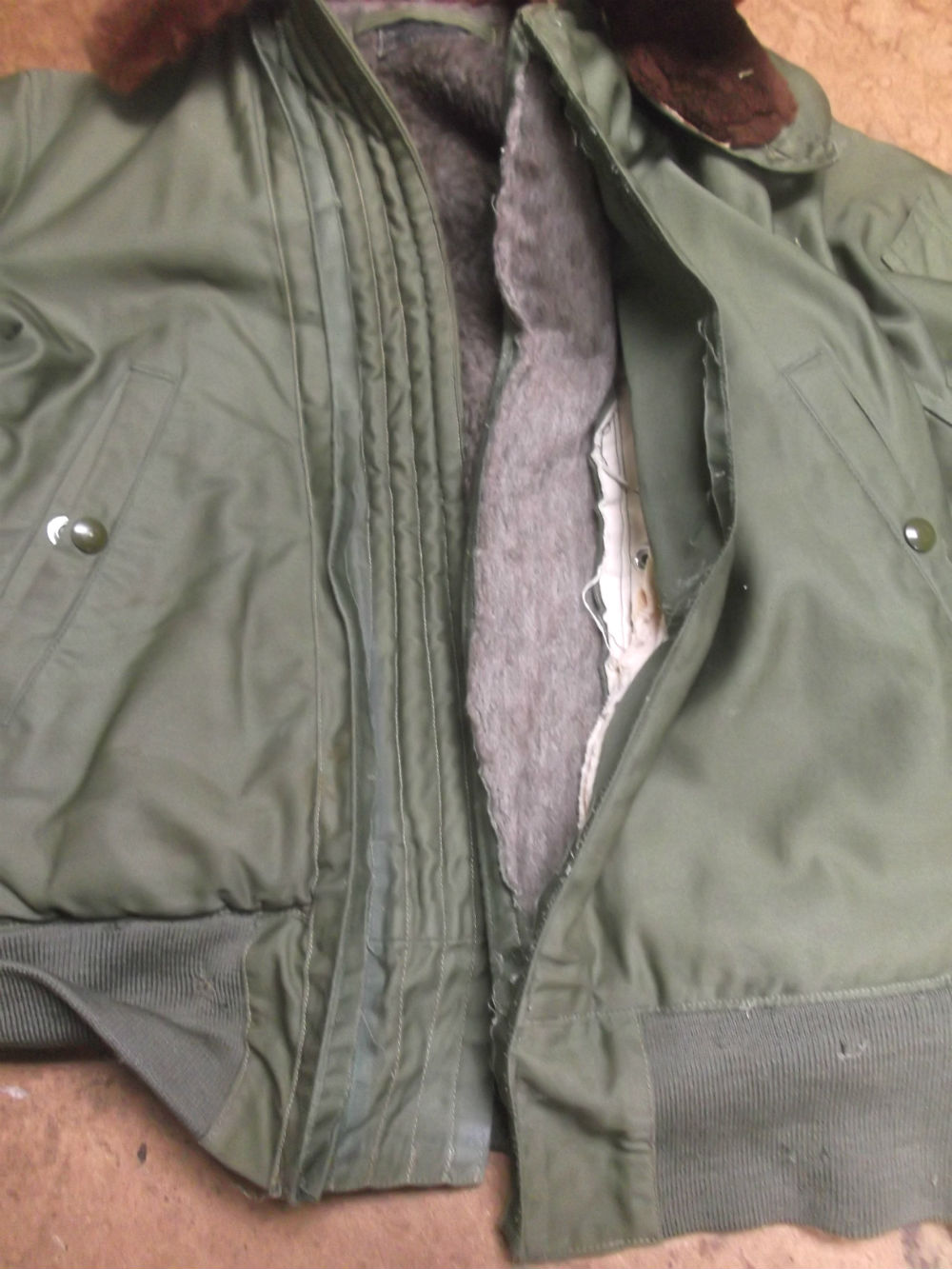 10枚目は新しいコンマーのファスナーを取り付けた後のB-15フライトジャケットです。