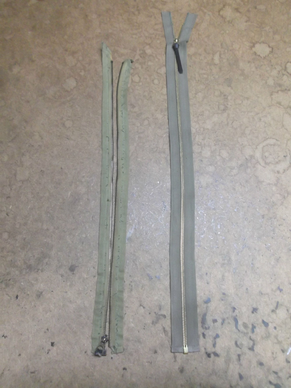 B-15フライトジャケットの壊れたファスナーを新しいものに交換していきます。