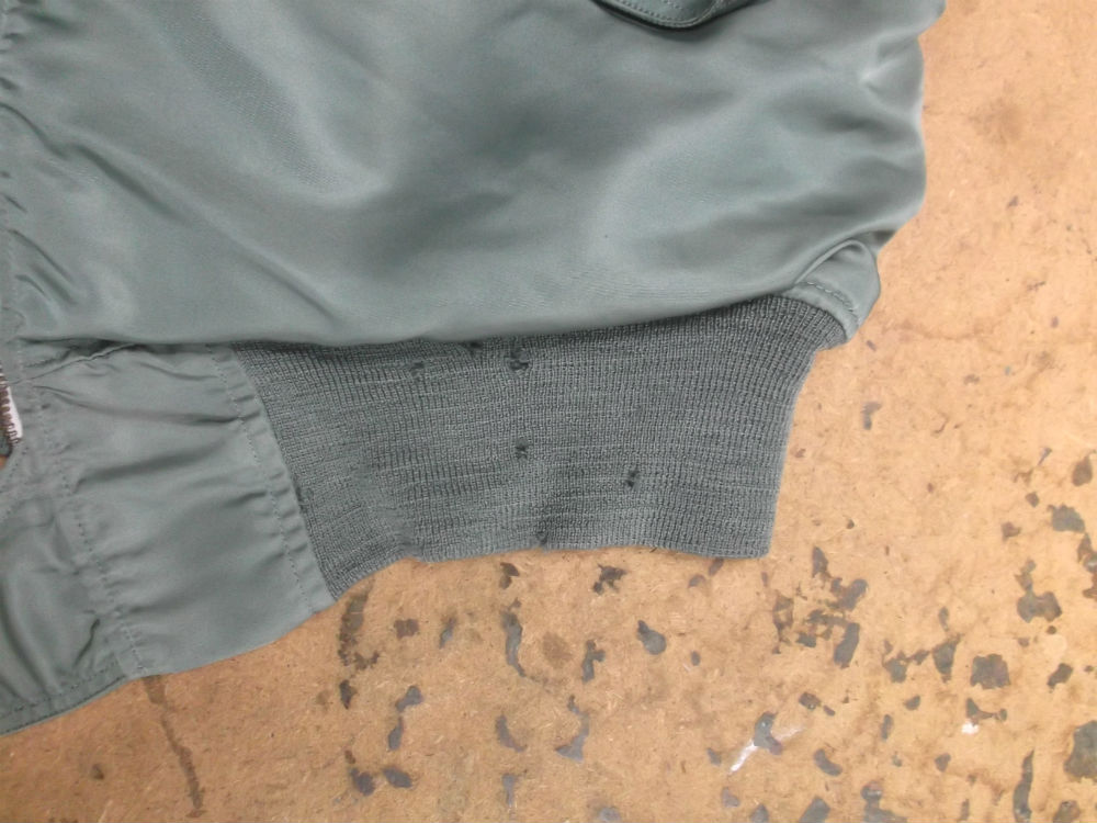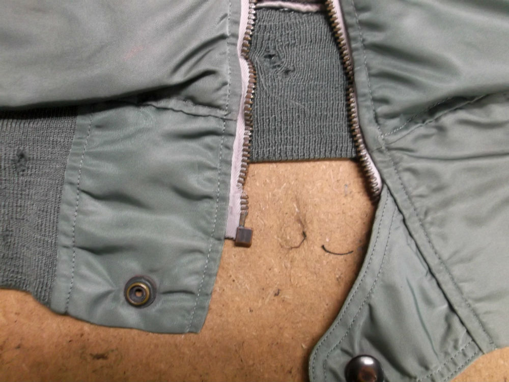 リブニットが破れだしてジッパーが壊れたL-2Bフライトジャケットを新しいものに交換していきます。