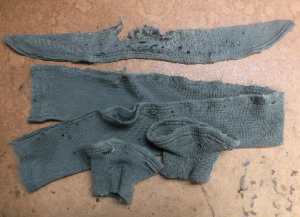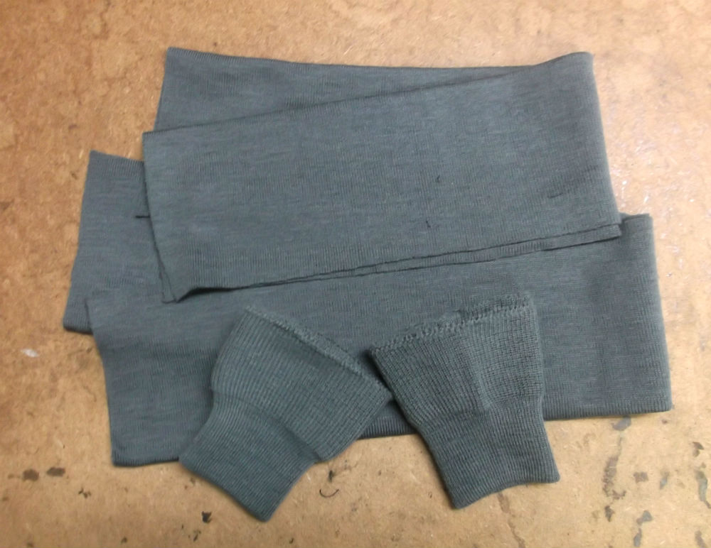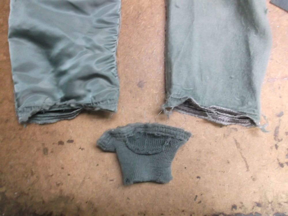4枚目は取り外していく襟、袖、腰回りのリブニットの写真です。