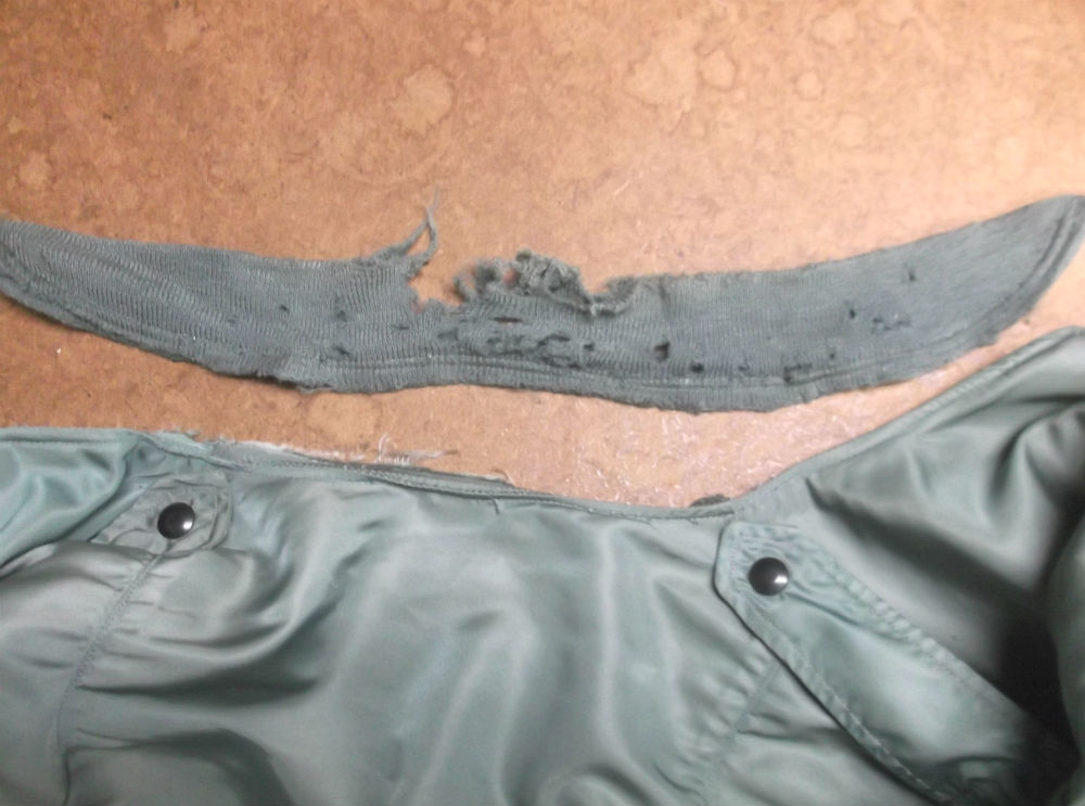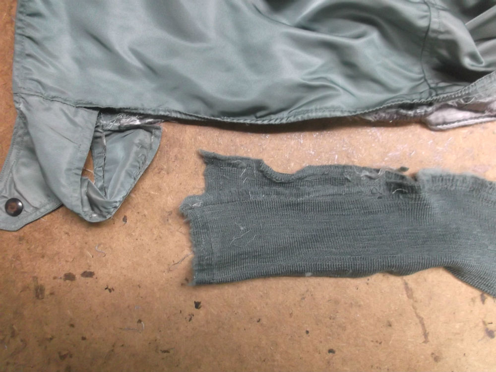 15枚目はL-2Bフライトジャケットからジッパーとリブニットを取り外した写真です。