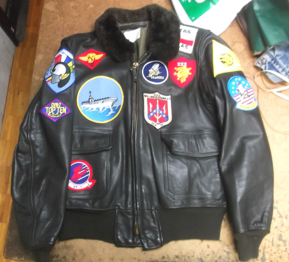 1枚目は福岡県からの郵送のお客さんのトップガンの主人公が着ていたようにワッペンを取り付けていく前のG-1フライトジャケットです。