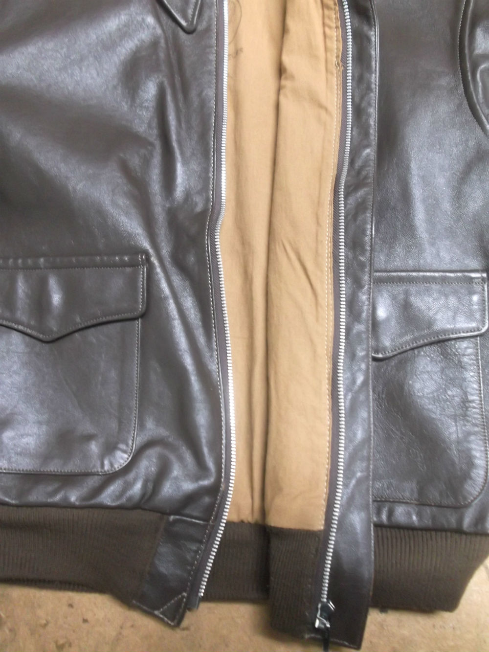 10枚目はコンマーのジッパーをA-2フライトジャケットに取り付けた後の写真です。