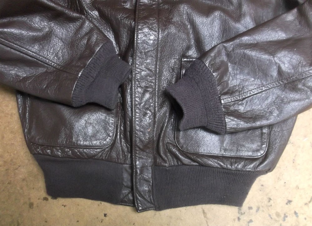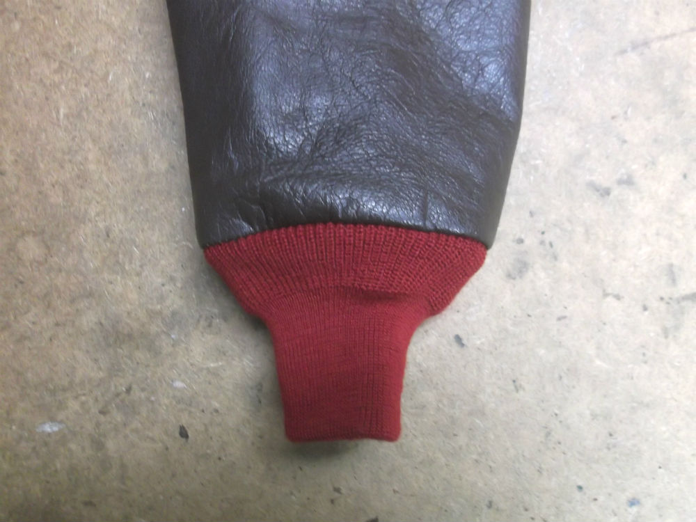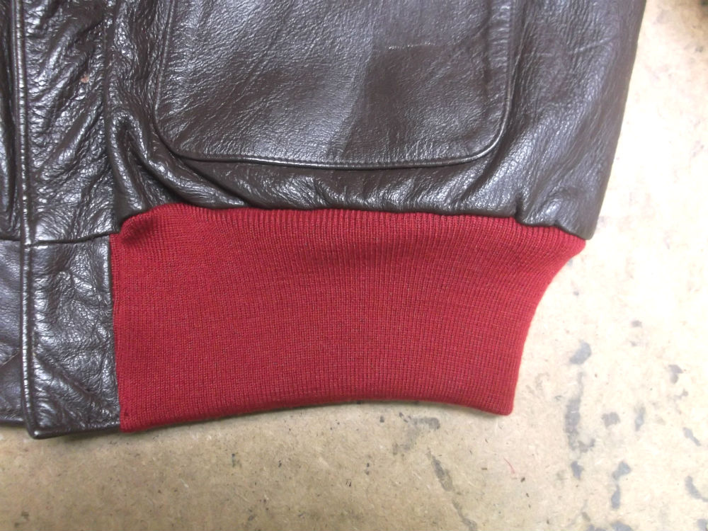 31枚目はA-2フライトジャケットに取り付けた両袖と腰回りのリブニットの写真です。