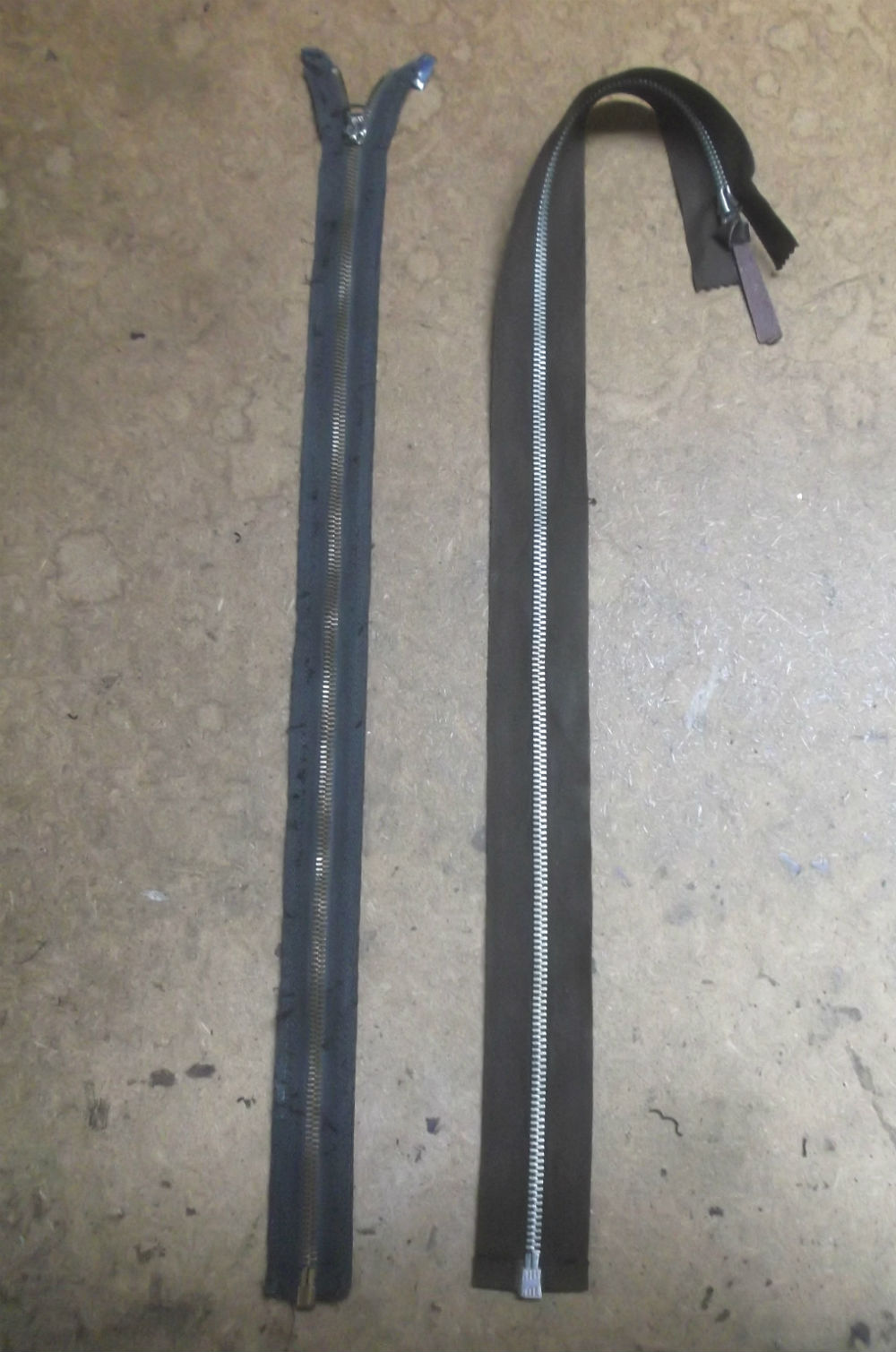 1. 壊れたライダースジャケットのジッパーを交換時にダブルジッパーに取り換え 革ジャン…