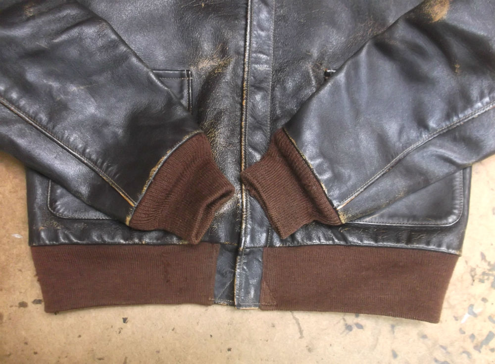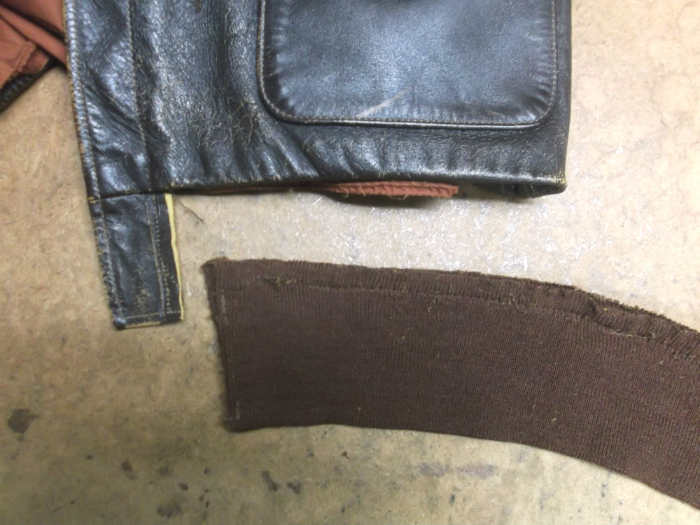 所々破れだしたA-2フライトジャケットのリブニットを新しいものに交換 a-2ニットパーツ取り換え