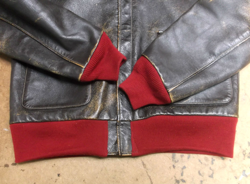 所々破れだしたA-2フライトジャケットのリブニットを新しいものに交換していきます。