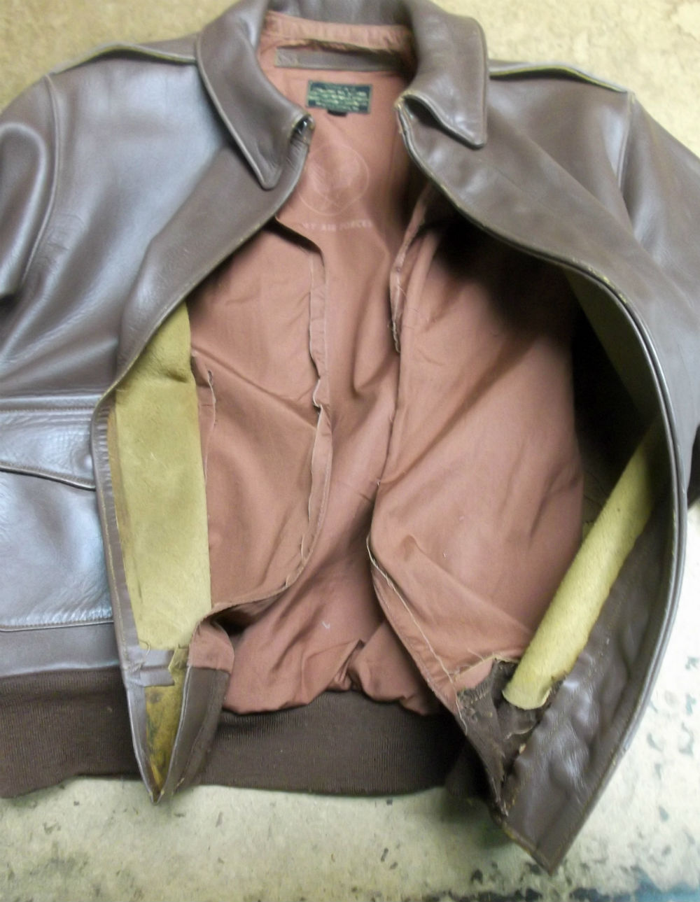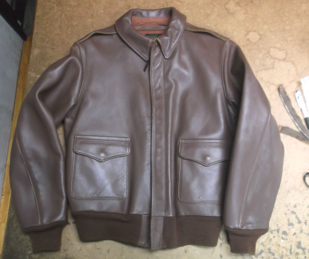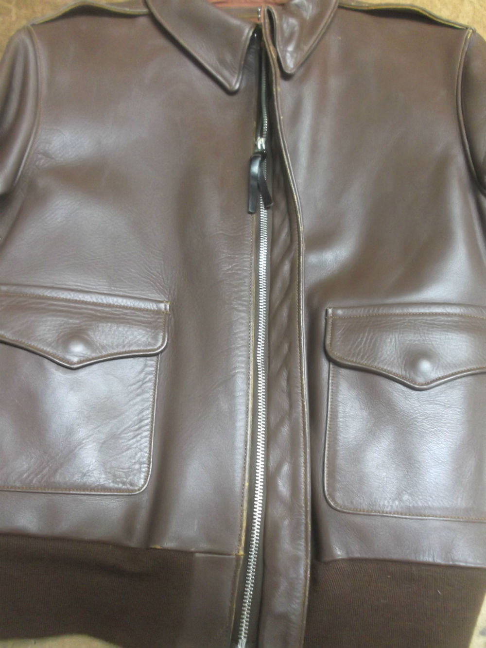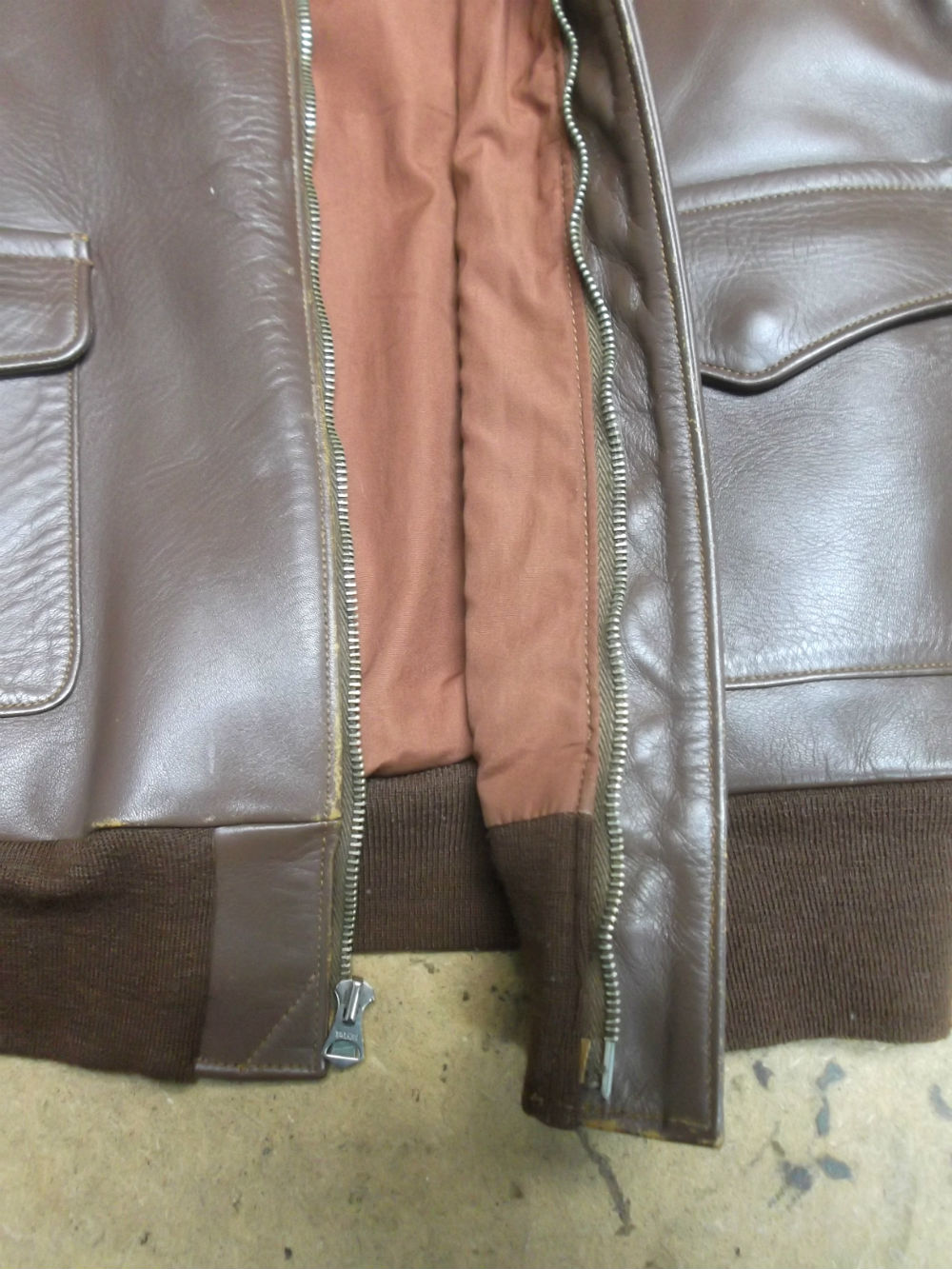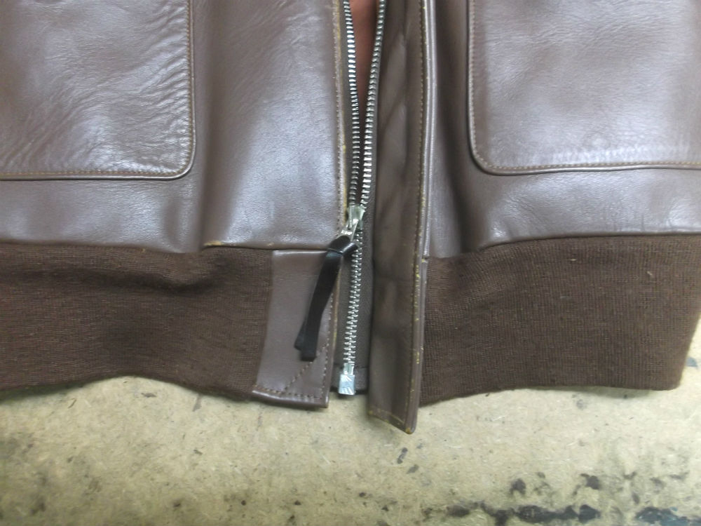 10枚目は新しいジッパーをA-2フライトジャケットに取り付けた後の写真です。