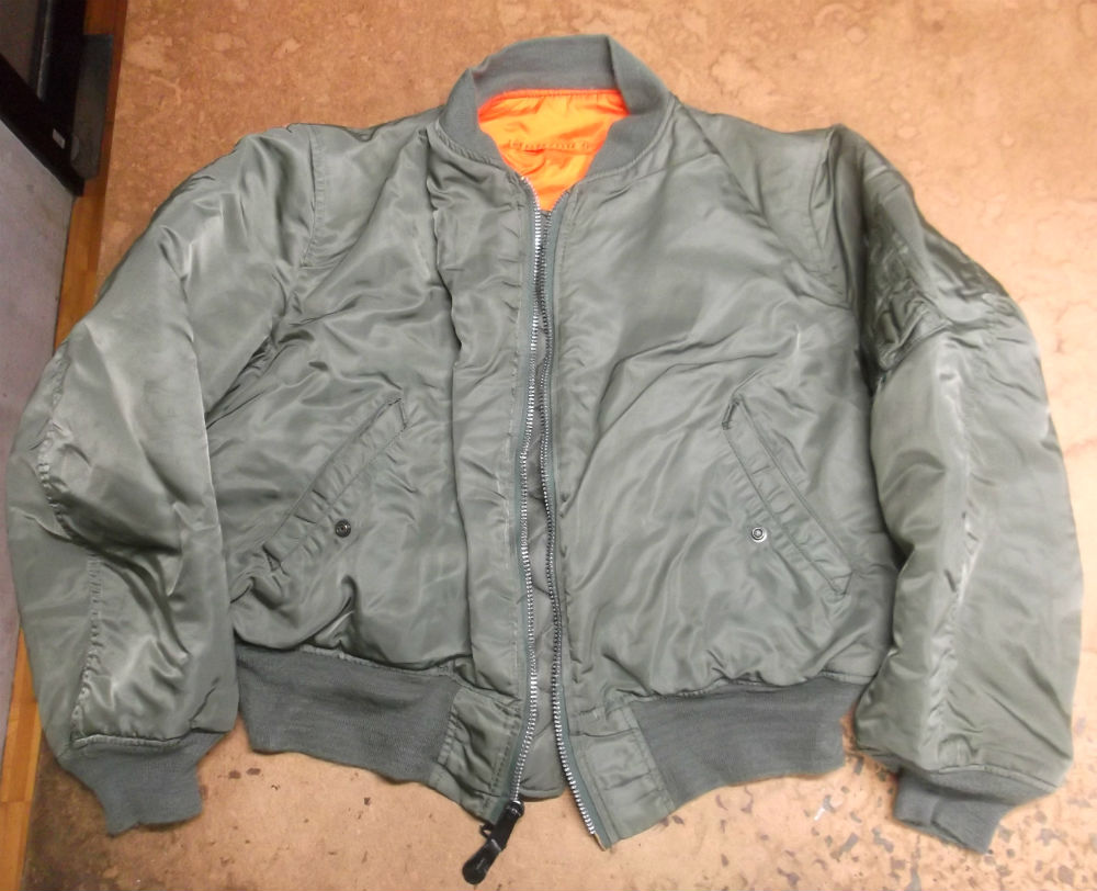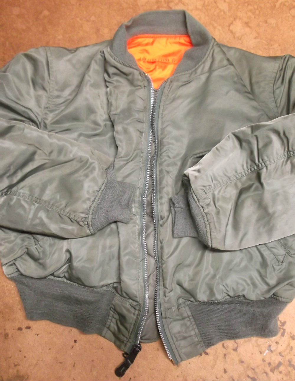 1枚目は山梨県からの郵送のお客さんの襟と両袖と腰回りを交換していく前のMA-1フライトジャケットです。