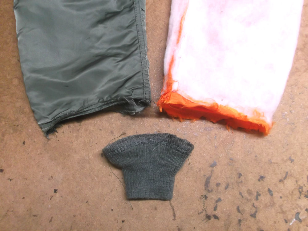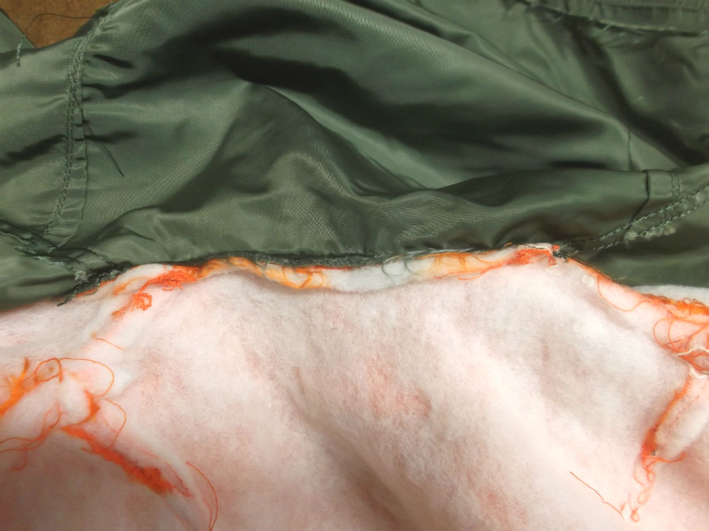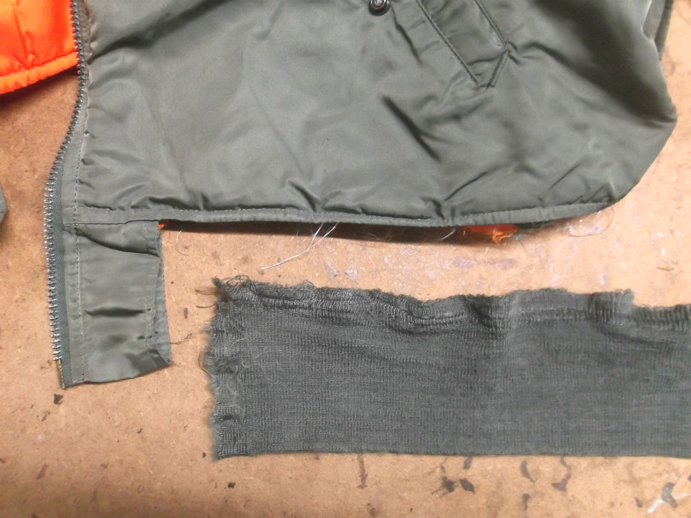 12枚目はMA-1フライトジャケットから襟、両袖、腰回りのリブニットを外した後の写真です。