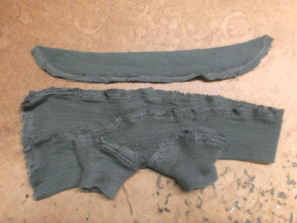 3枚目は取り外していく前の襟、両袖、腰回りのリブニットの写真です。