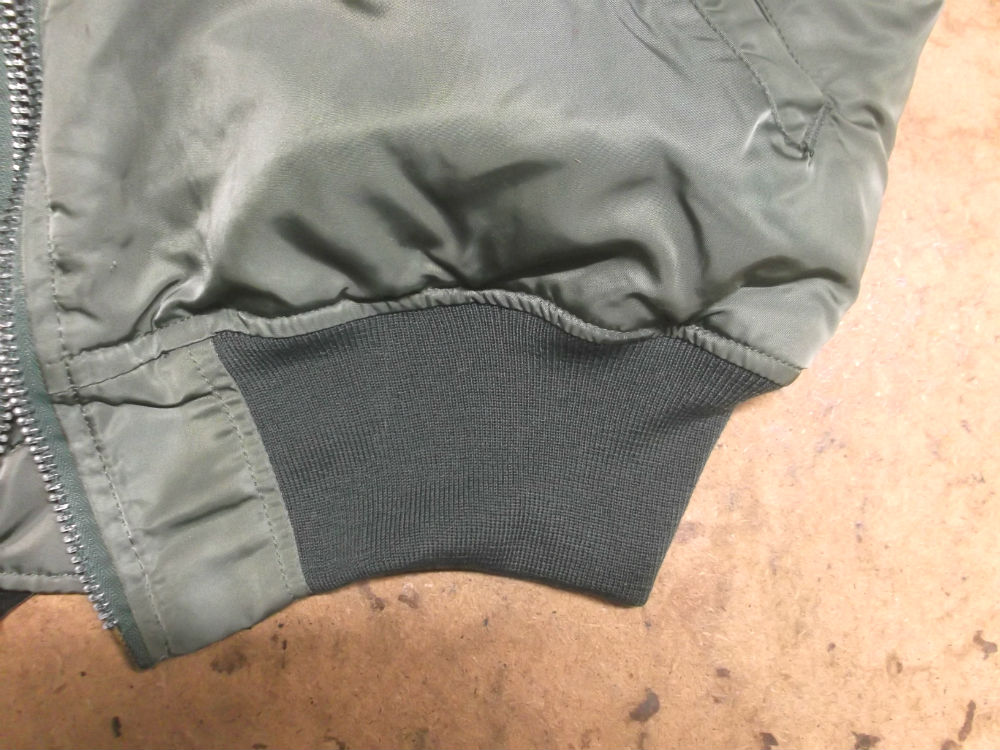 リブニットが所々破れてるMA-1フライトジャケットを新しいものに交換していきます。