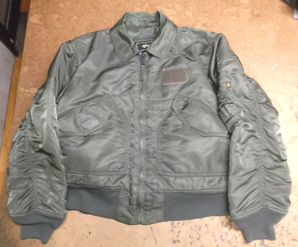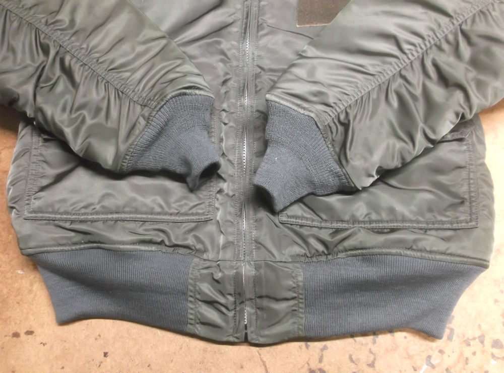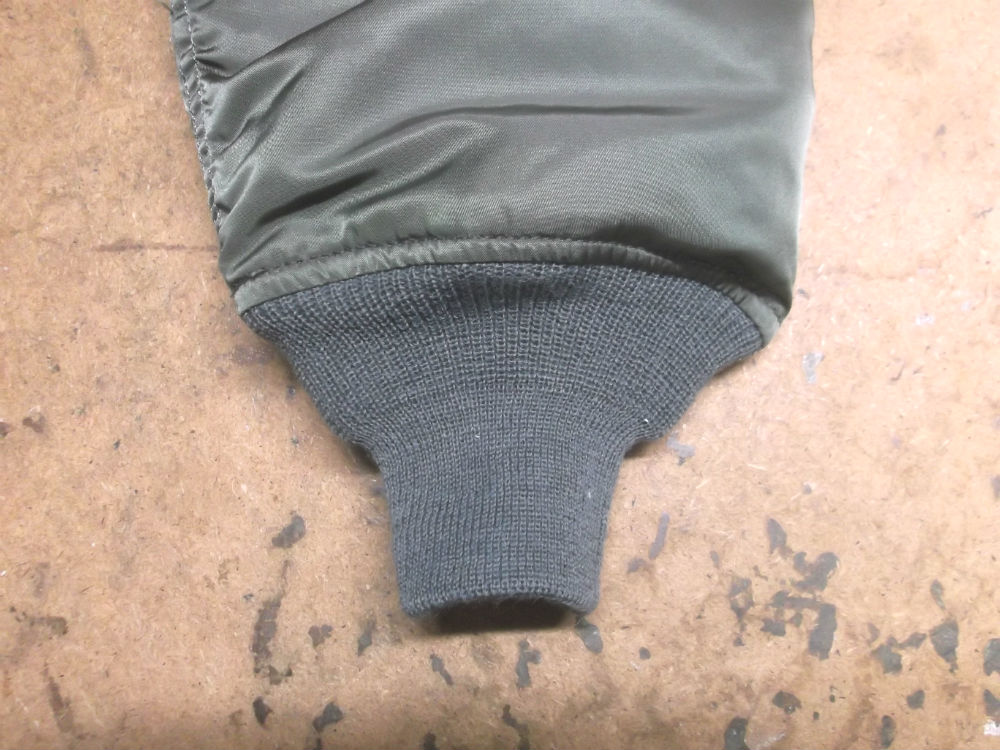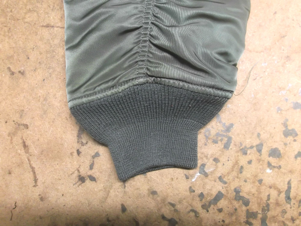 11枚目はCWU-45Pフライトジャケットに両袖と腰回りの新しいリブニットを取り付けた後の写真です。