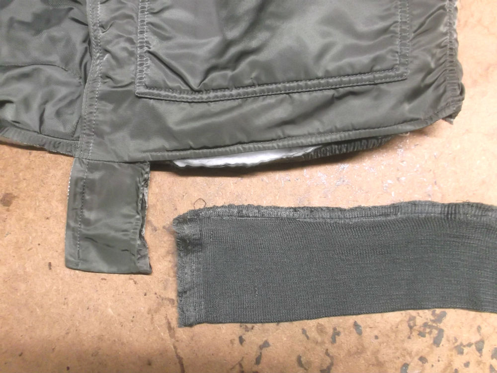 所々破れだしたCWU-45Pフライトジャケットのリブニットを新しいものに交換 cwu-45pニットパーツ取り換え