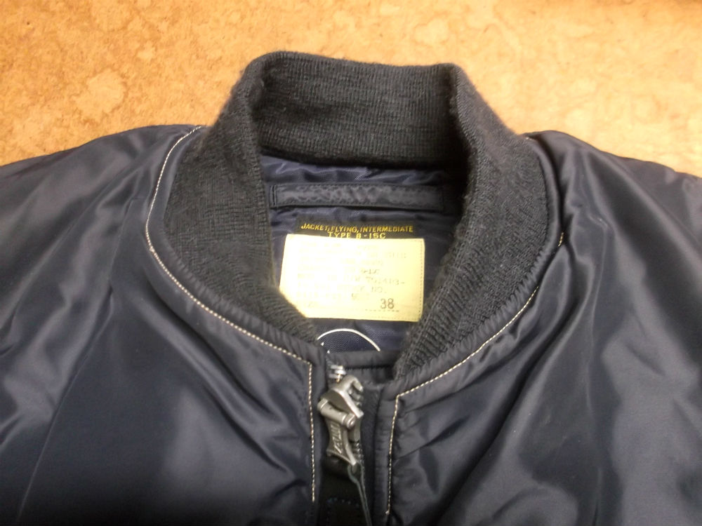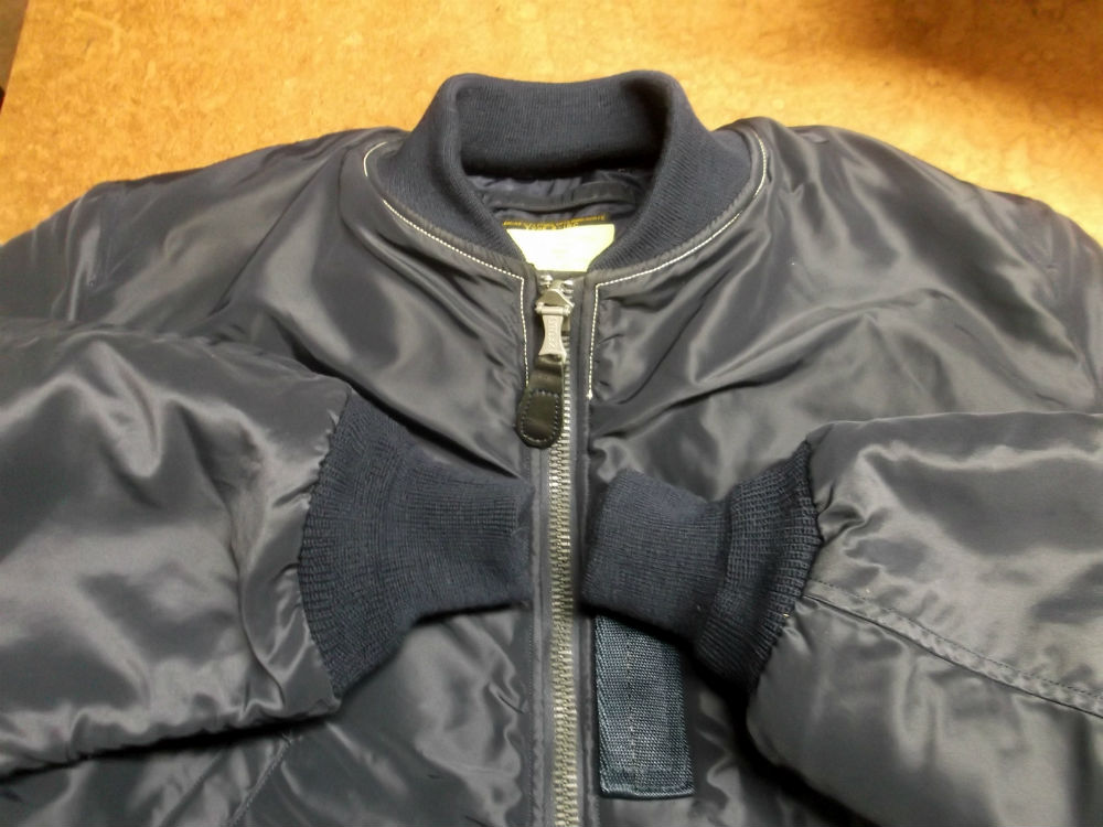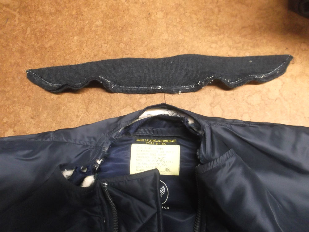 腰回りは交換ぜずに襟と両袖のリブニットを新しいものにB-15フライトジャケットを交換していきます。