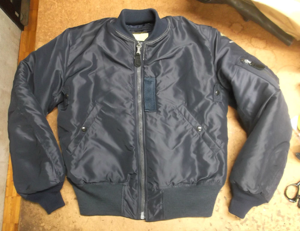 1枚目は長崎県からの郵送のお客さんの襟と両袖だけを交換していく前のB-15フライトジャケットです。