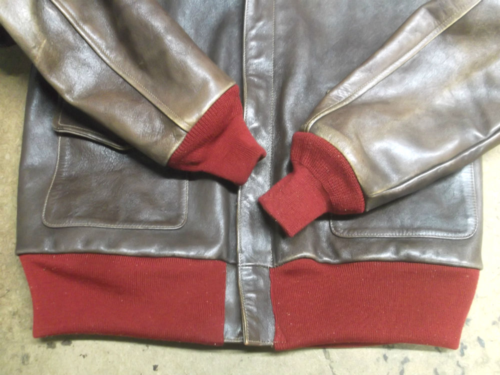 3枚目はA-2フライトジャケットに付いている両袖と腰回りのリブニットの写真です。