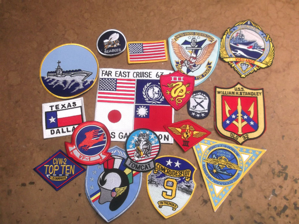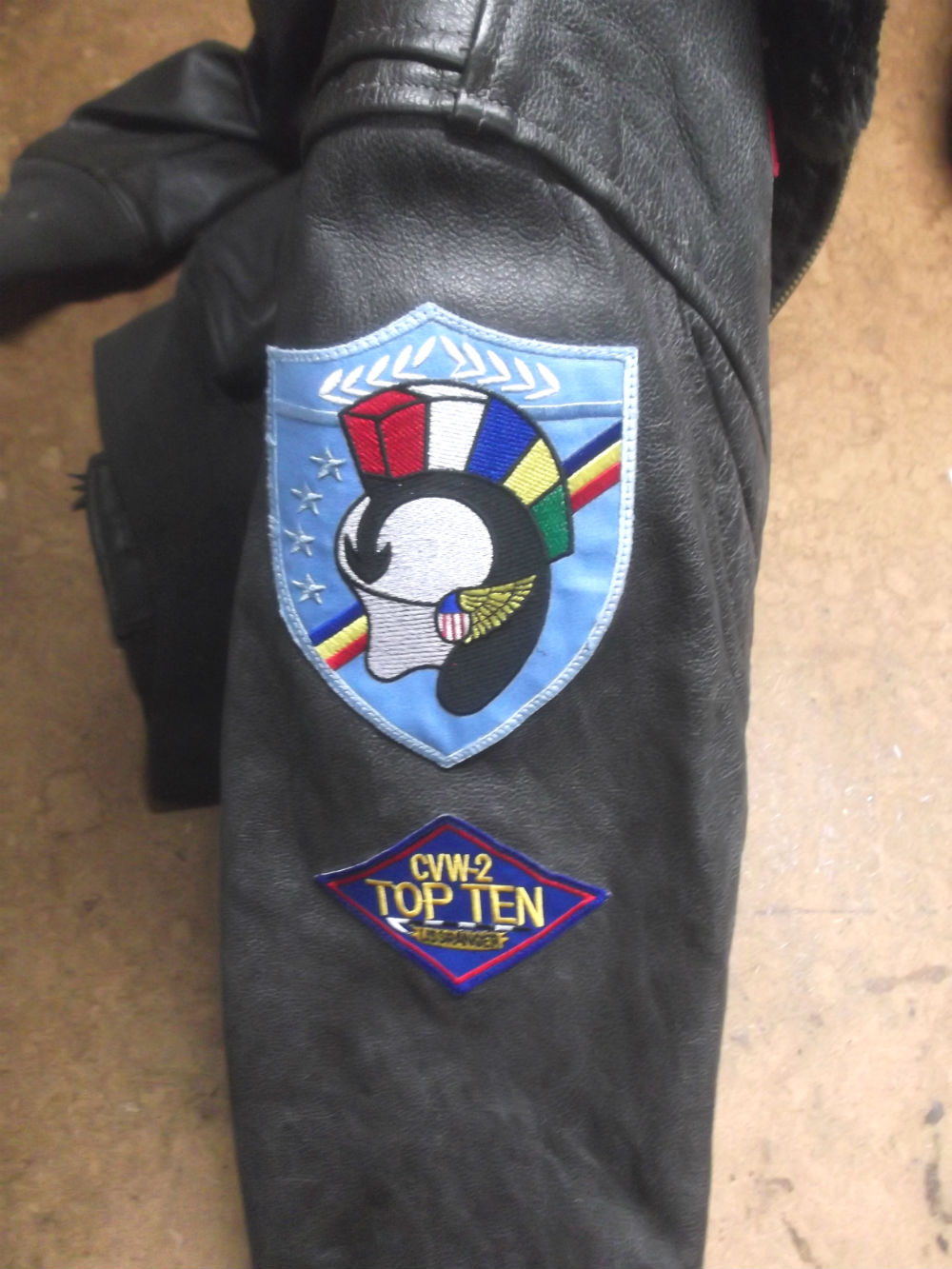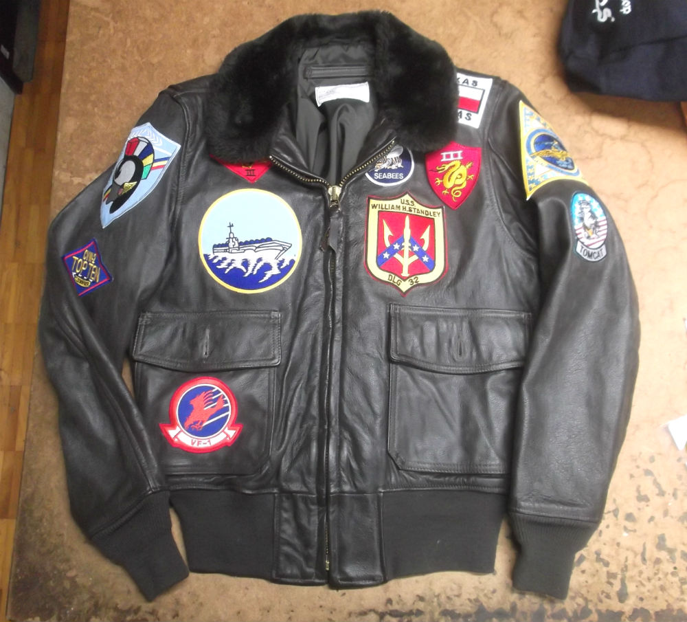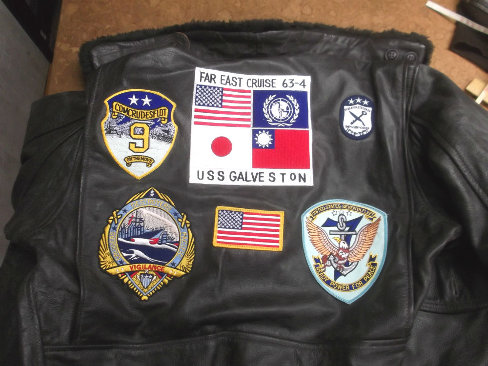 2枚目はお客さんが用意してくださったG-1フライトジャケットに取り付けていくワッペンの写真です。