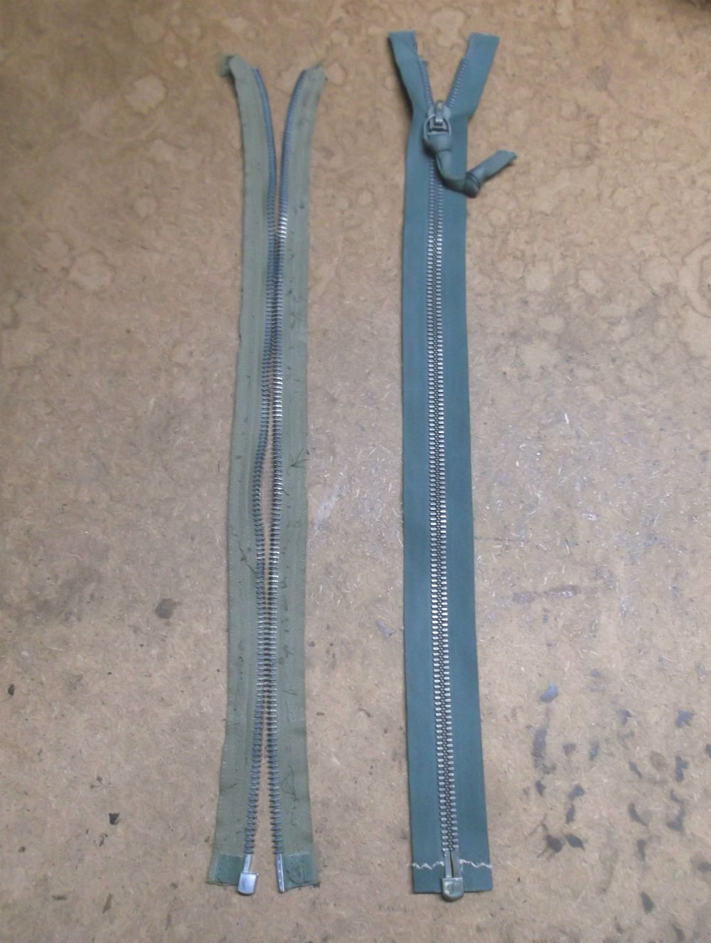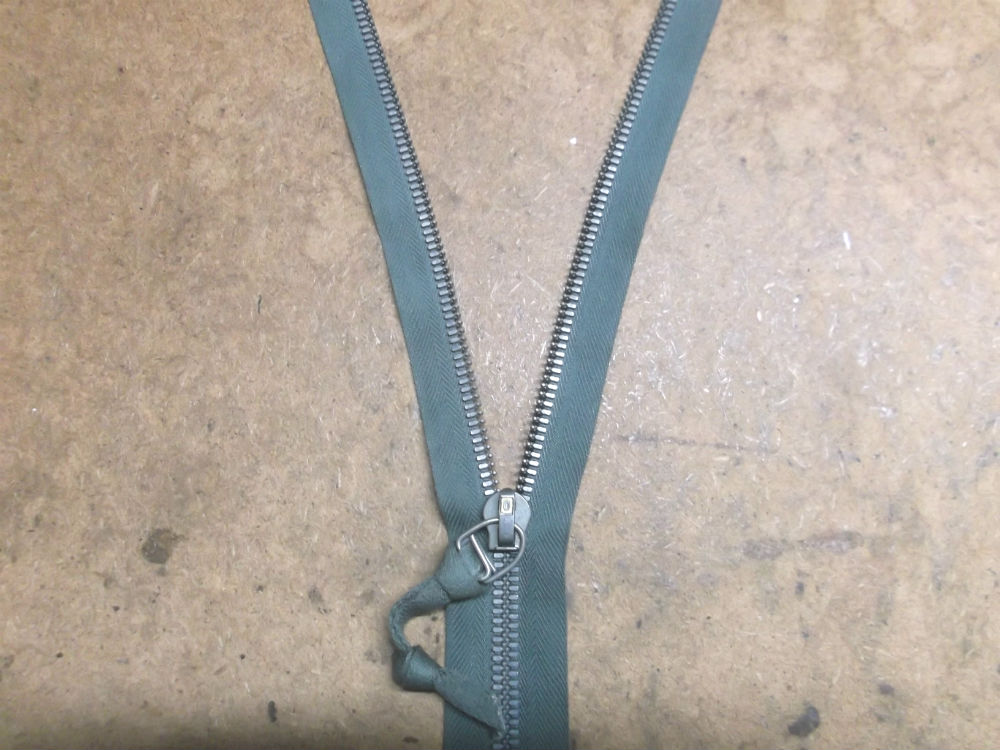 MA-1フライトジャケットの壊れたフロントファスナーを新しいクラウンのキャスト製のジッパーに交換していきます。